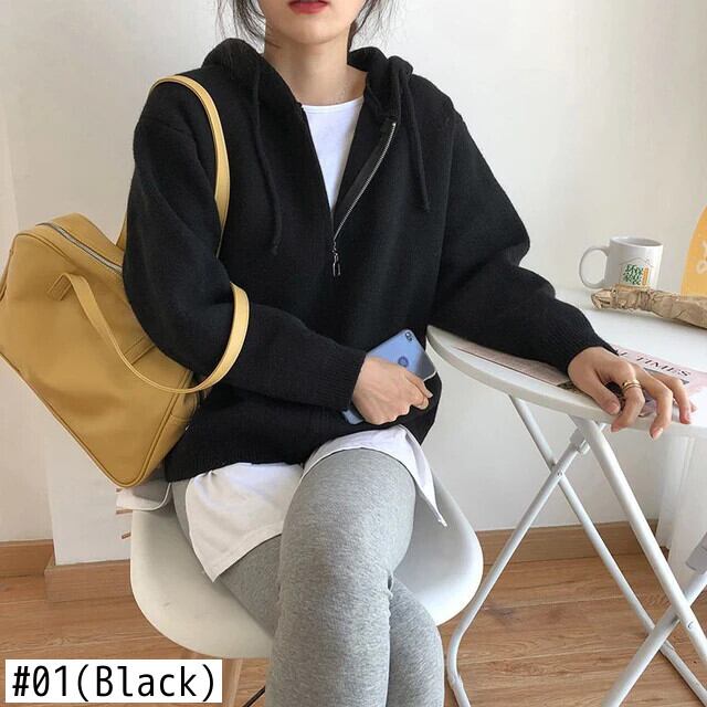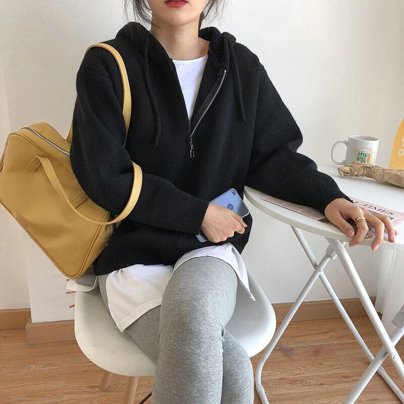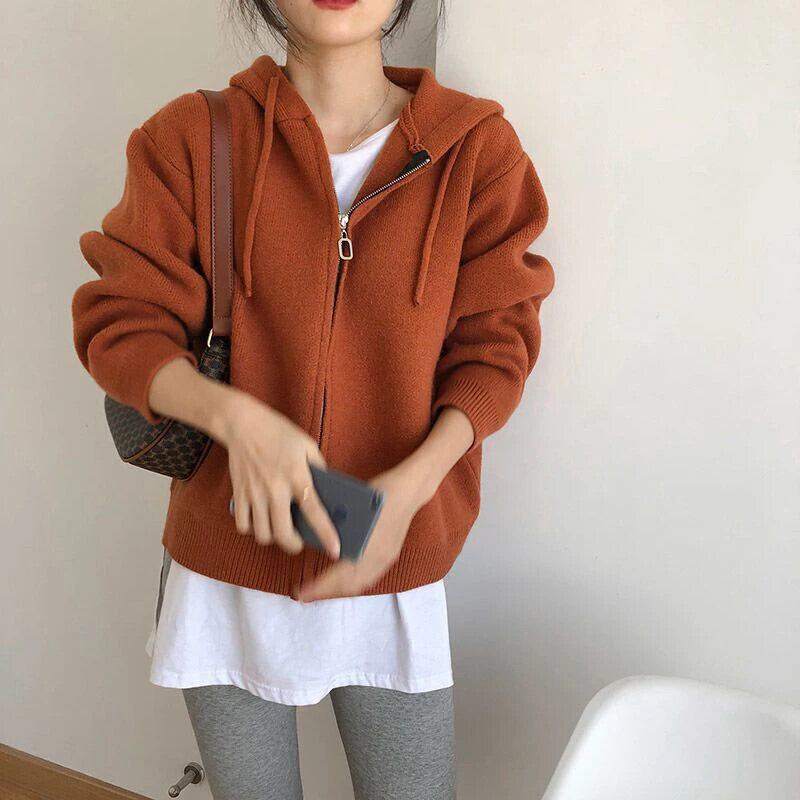 送料無料 Gidyq 女性カーディガンセーター秋ジッパールーズニットパーカーストリートすべて一致ジャケット オータム 秋物 AE008077685823896343
