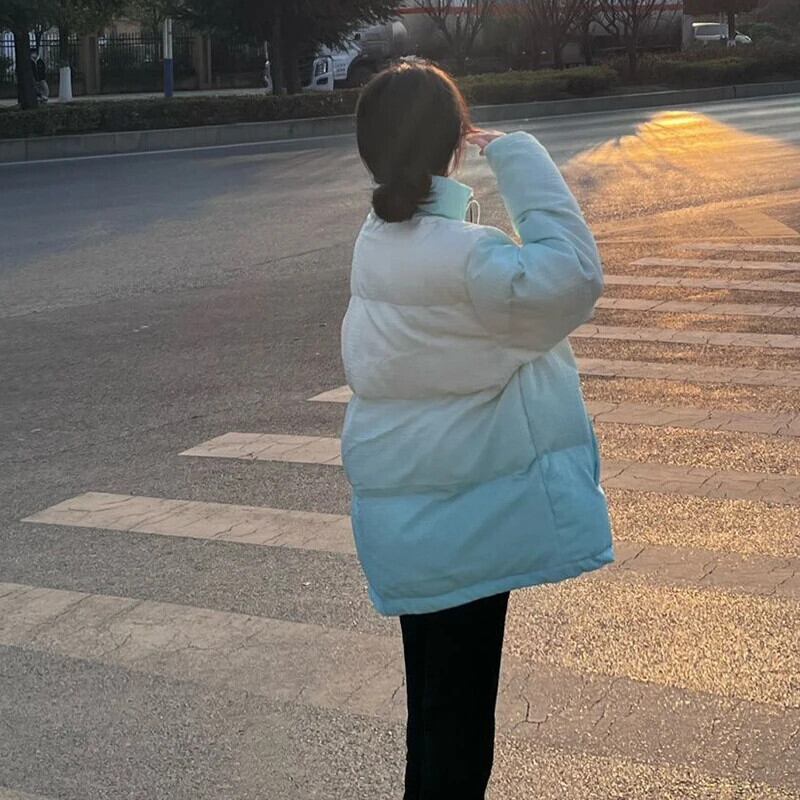 送料無料 Gidyq 女性グラデーションパーカー冬かわいいふわふわジャケット厚くて暖かい学生ルーズダウンコート 大人ガーリー スウィート キュート カジュアル ウィンター 冬物 AE008077680558049381