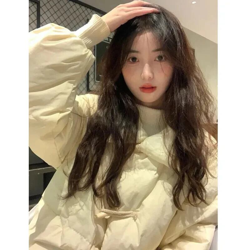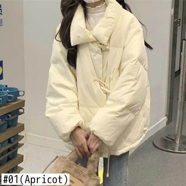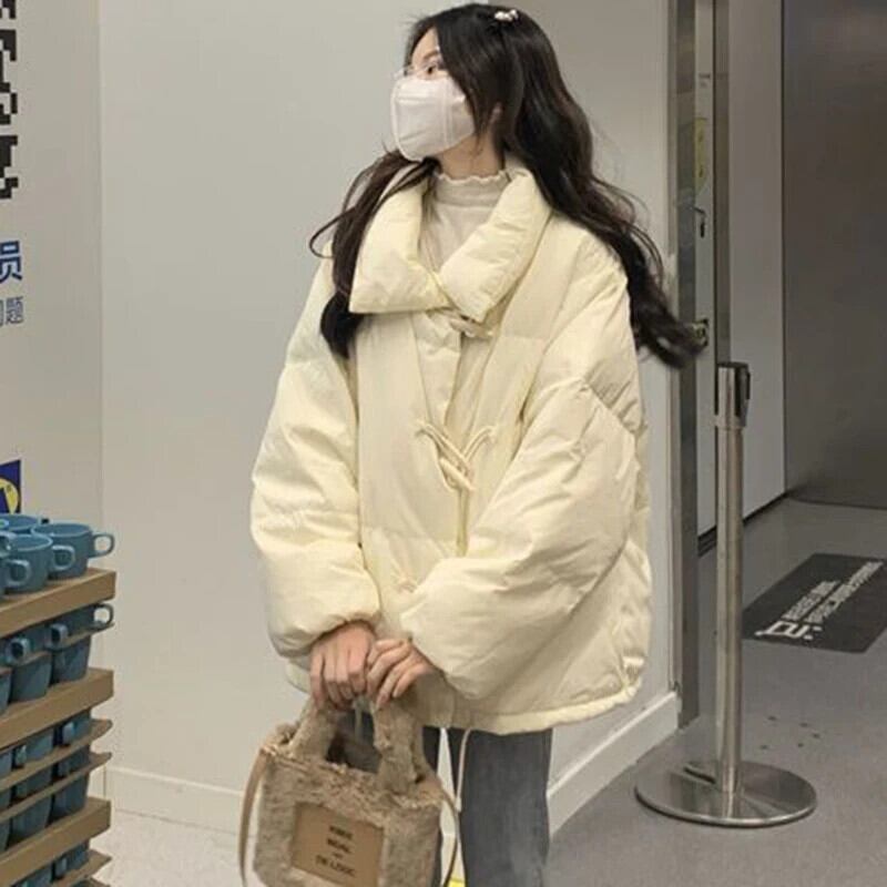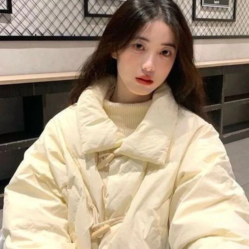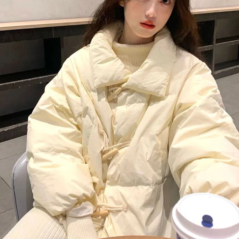 送料無料 Gidyq 女性厚く暖かいダウンジャケット冬ストリートルーズパーカー学生ホーンボタンパフコート ウィンター 冬物 AE008077696163394883
