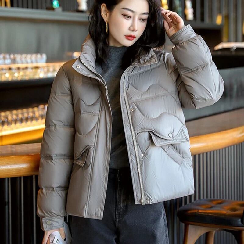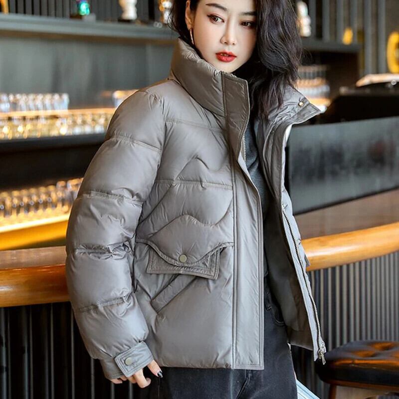 送料無料 Gidyq 女性パーカーストリートオールマッチクロップドパファーコートソリッドパーティールーズパフィージャケット ソリッドカラー AE008077680992353023