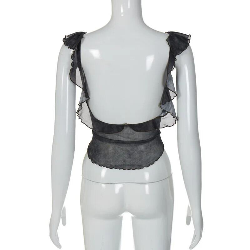 送料無料 Gidyq 女性木耳キャミソールアメリカンスタイルストリートクロップドタンク夏セクシーな背中の開いたストリートトップス サマー 夏物 AE008077633879589653