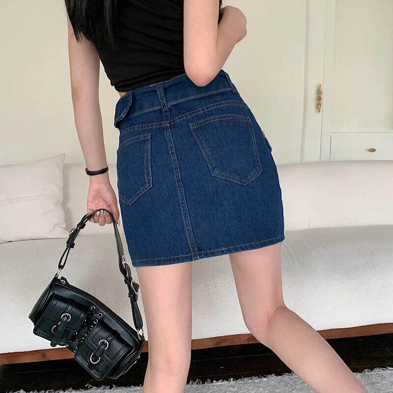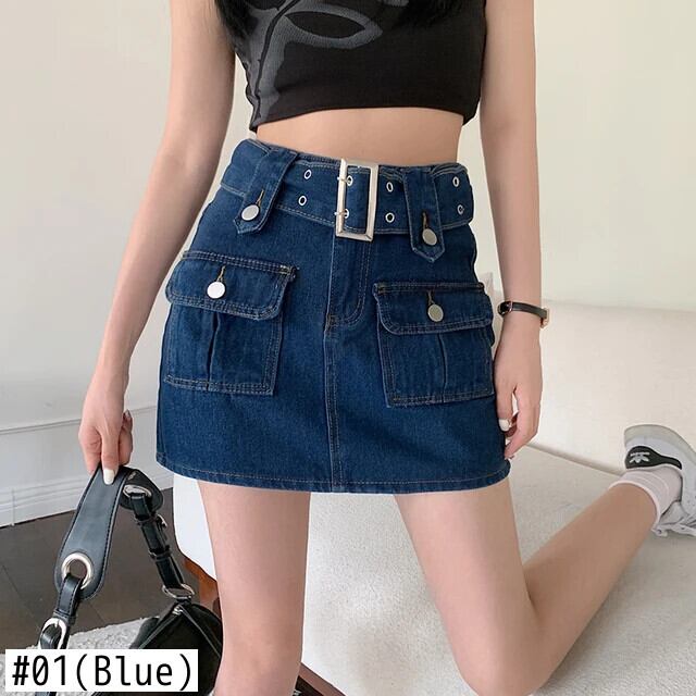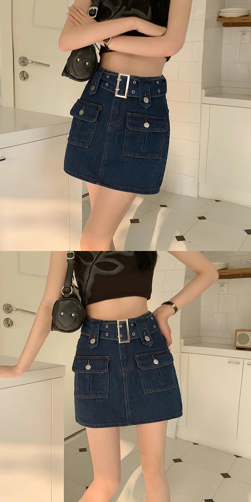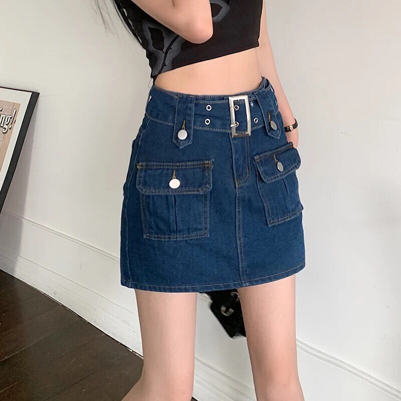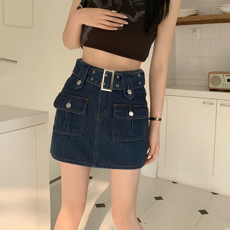 送料無料 Gidyq 女性ウエストデニムスカートレトロベルトミニスカート Y2K 夏ストリート A ラインジーンズスカート サマー 夏物 ハーネス Aライン AE008077684281747961