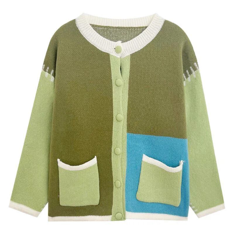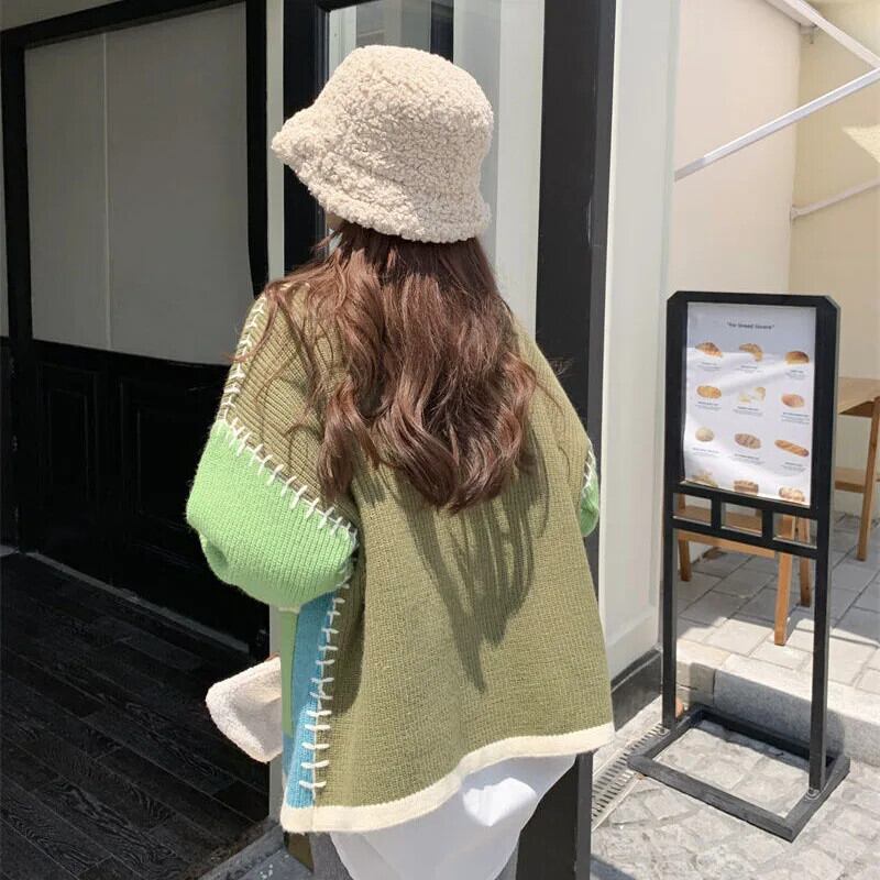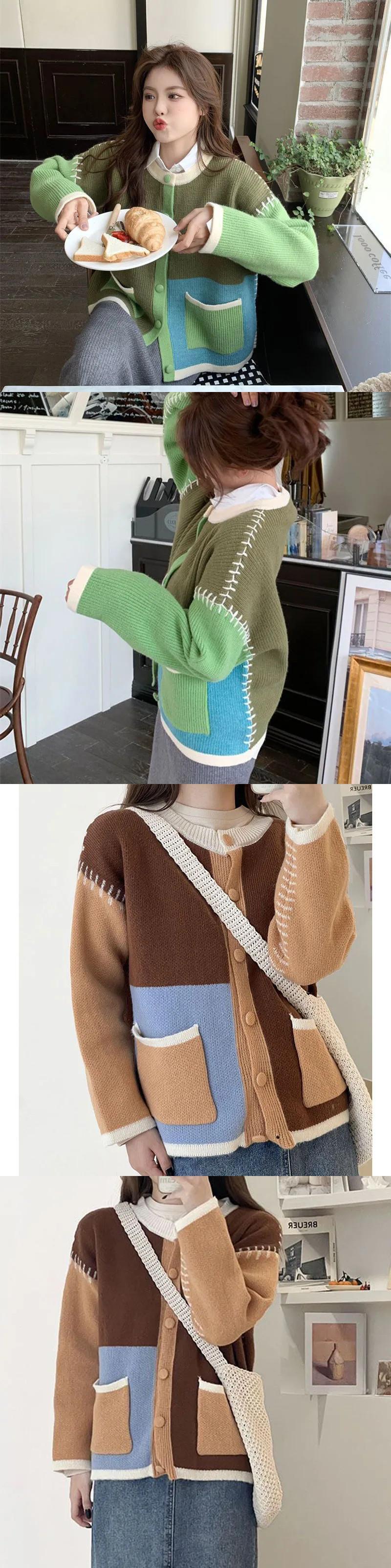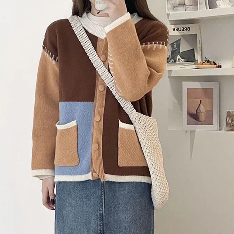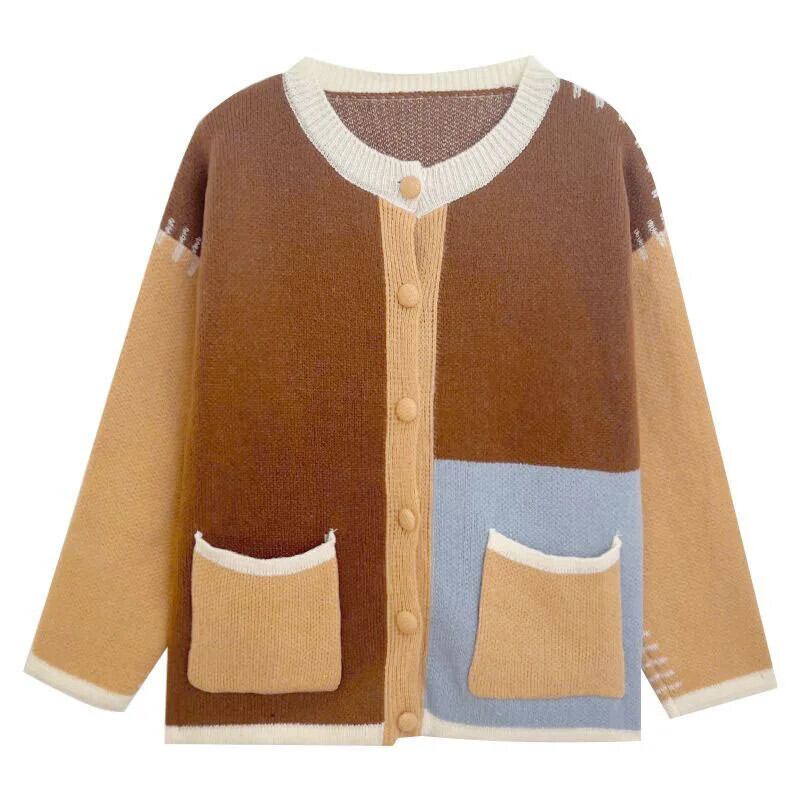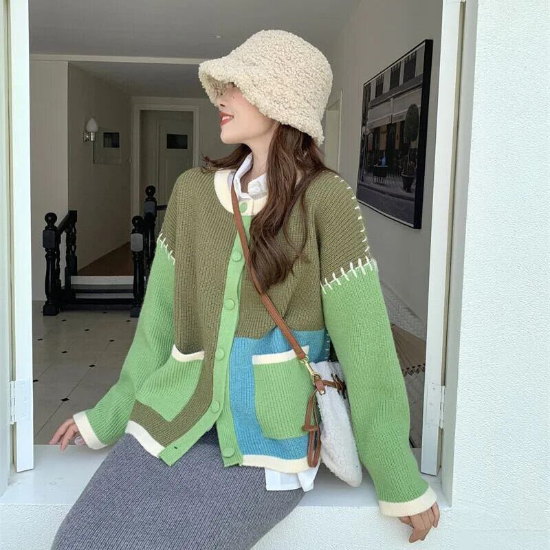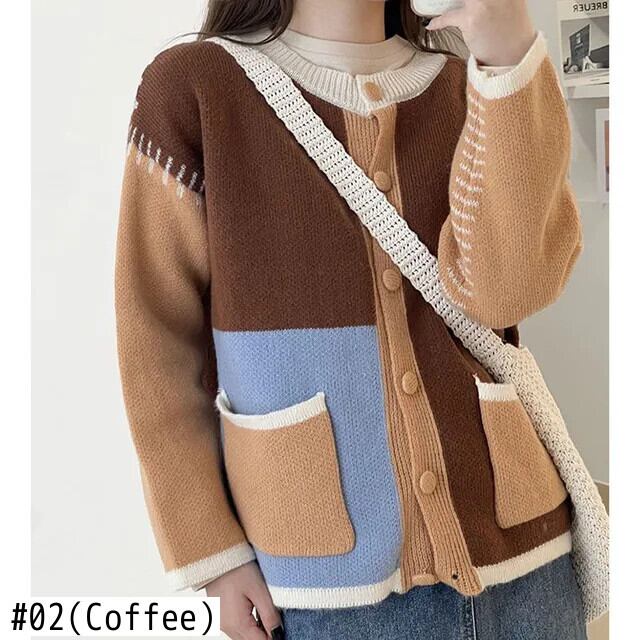 送料無料 Gidyq 女性カーディガンセーター秋ストリートパッチワークルーズコートすべて一致ポケットニットジャケット オータム 秋物 AE008077667025524790