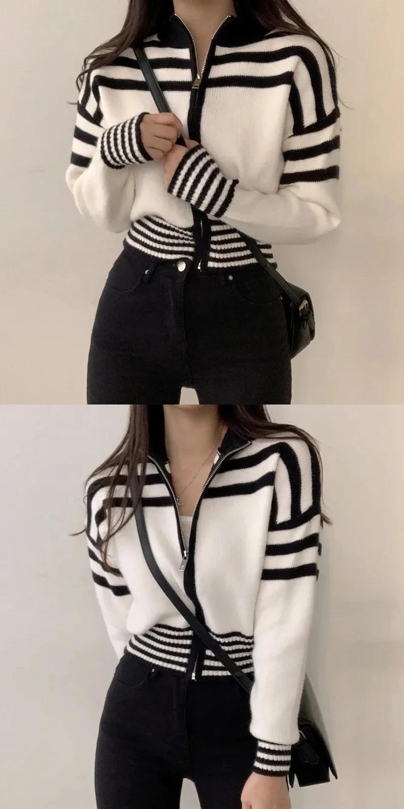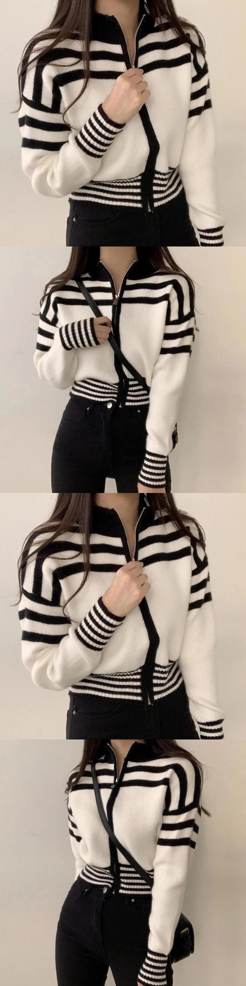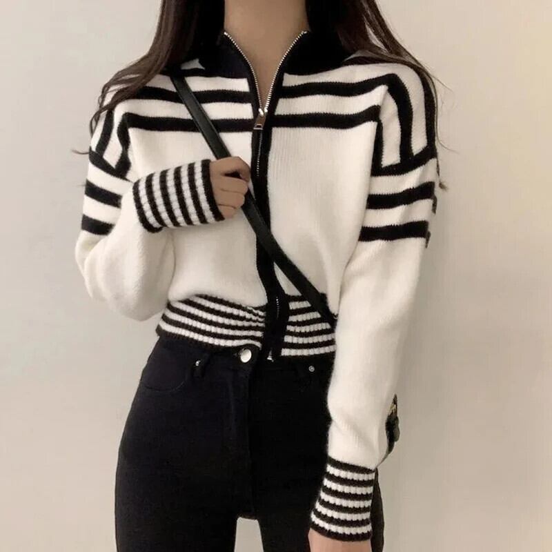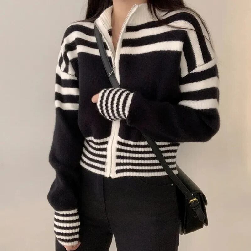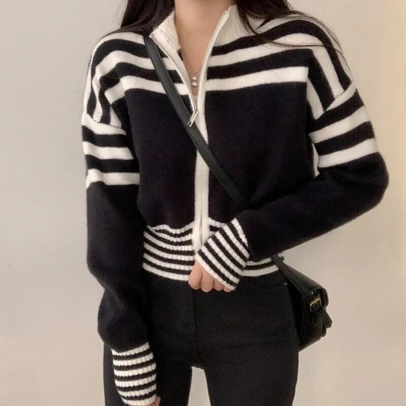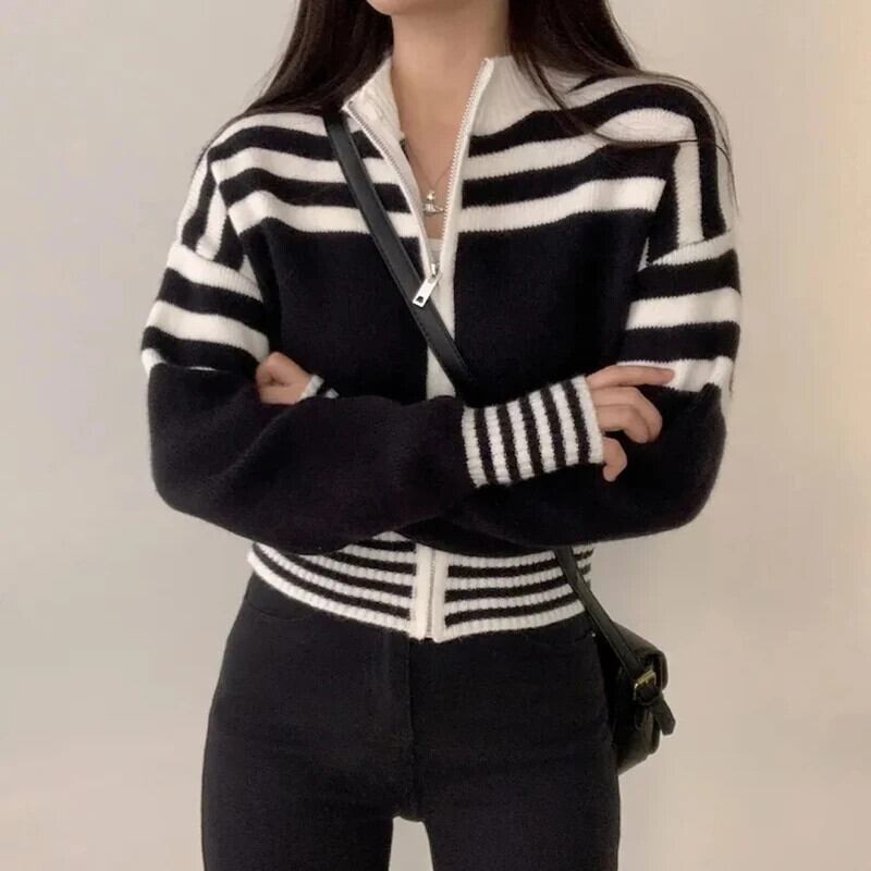 送料無料 Gidyq 女性ストライプカーディガンセーターストリートジッパールーズコート秋すべて一致ニットジャケット オータム 秋物 AE008077613976935670