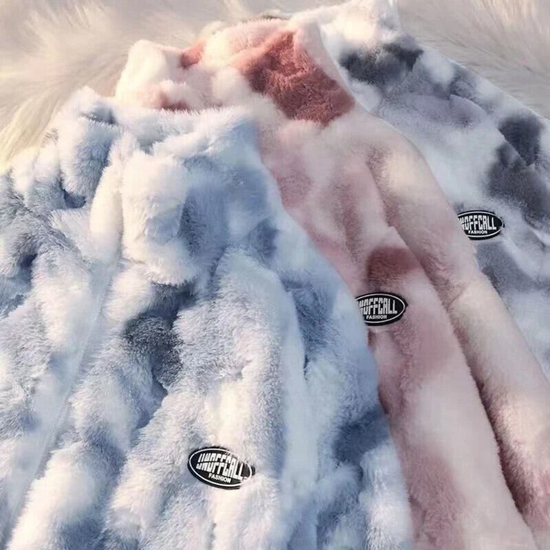 送料無料 Gidyq 女性タイダイラムフリースジャケット冬ジッパー BF 暖かい豪華な上着原宿ストリート緩い厚いコート かわいい ウィンター 冬物 AE008077651622148655