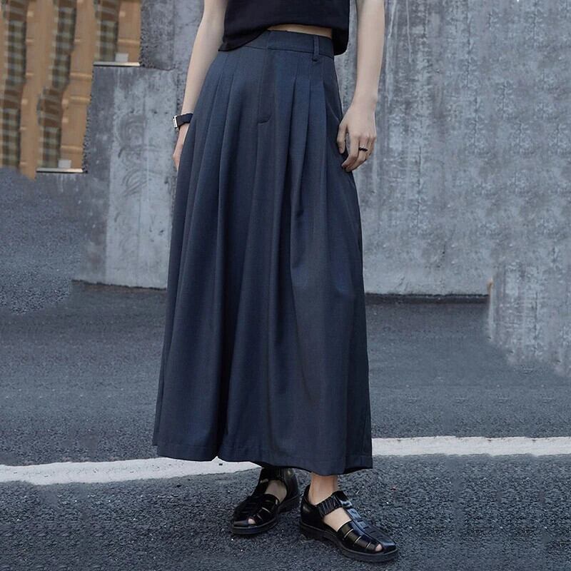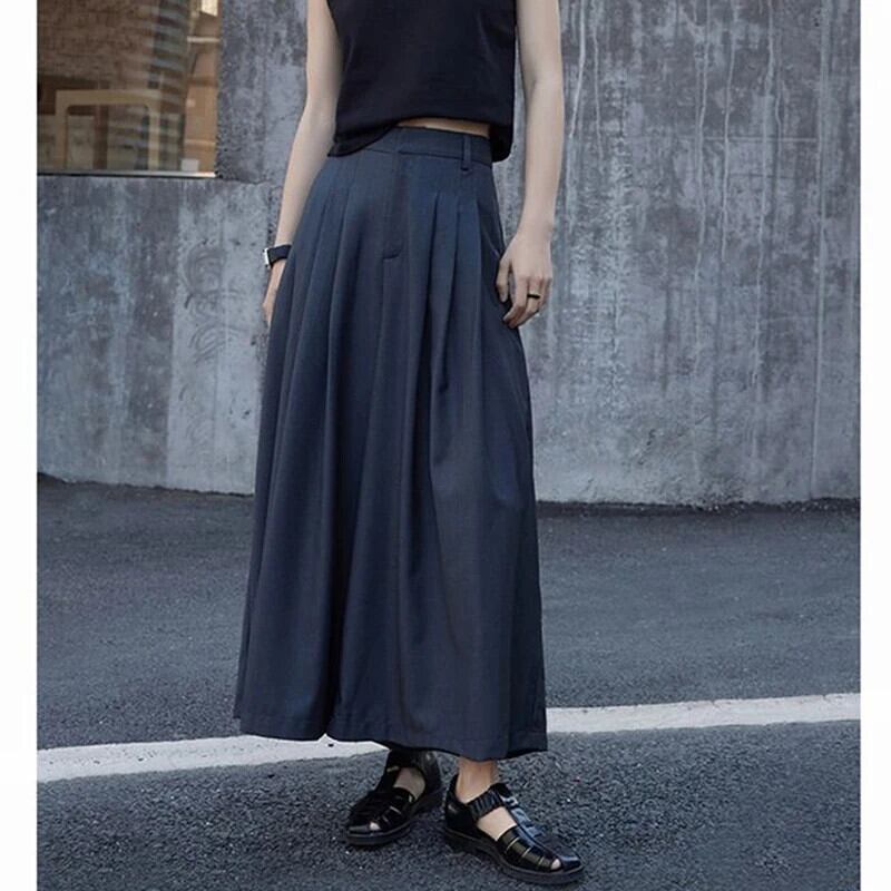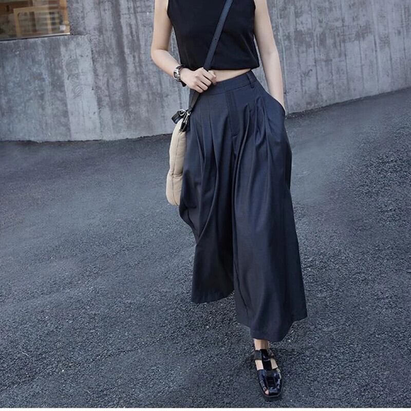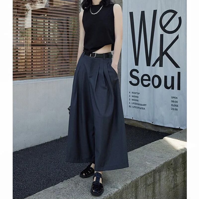 送料無料 Gidyq 女性プリーツパンツゴシックベルトルーズ足首丈パンツウエストストリートワイドレッグパンツ ハーネス ワイドパンツ AE008077684513079489