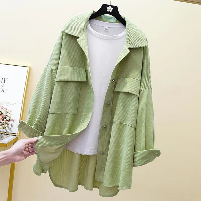 送料無料 Gidyq 女性コーデュロイシャツヴィンテージルーズ長袖ブラウス春すべて一致ストリートシャツ ロング スプリング 春物 ビンテージ AE008077685810454194