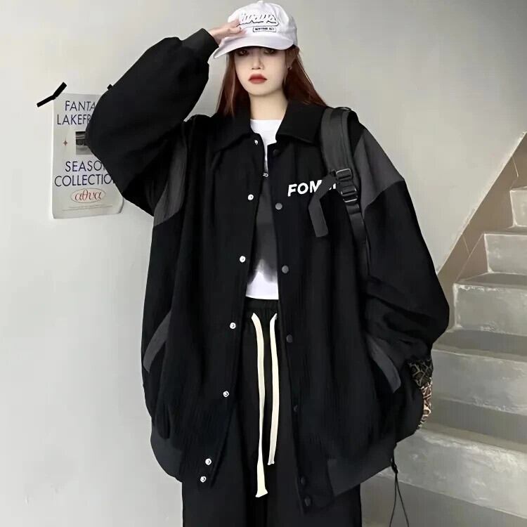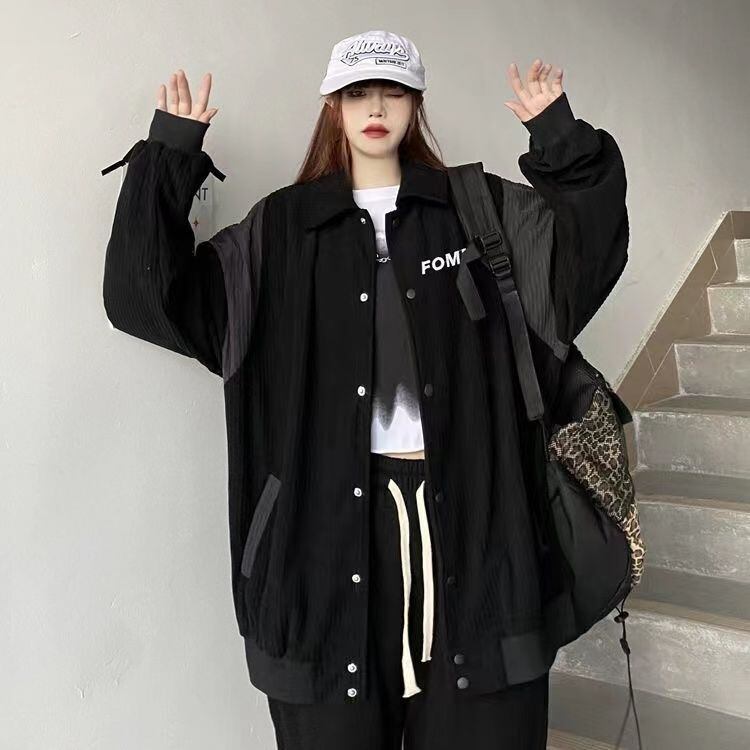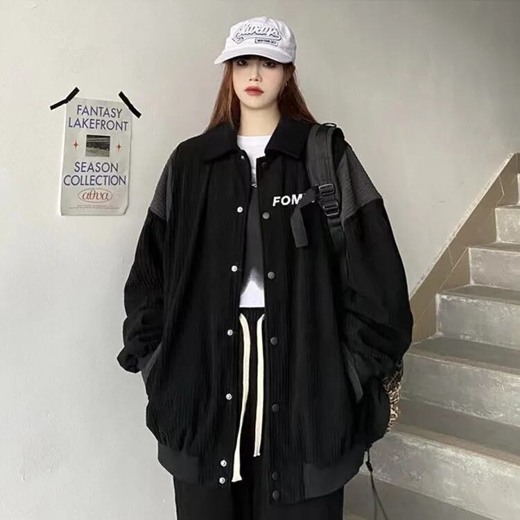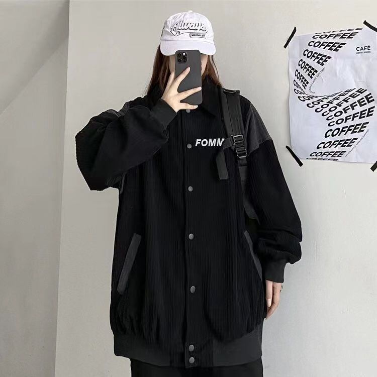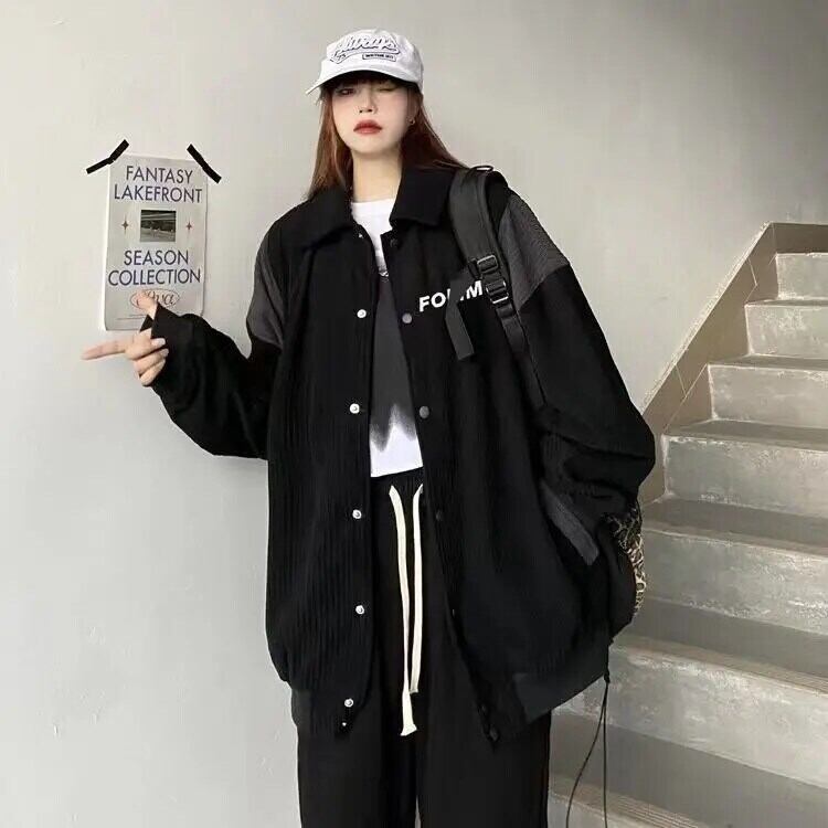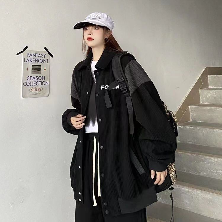 送料無料 Gidyq レディース コーデュロイ ベースボール ジャケット 秋 パッチワーク ルーズ アウター すべてマッチ ストリートウェア コート オータム 秋物 AE008077666350727275
