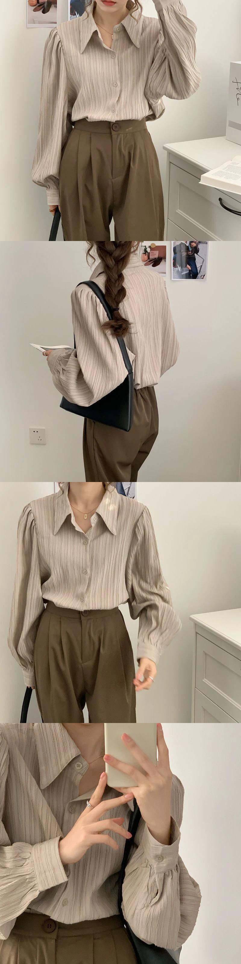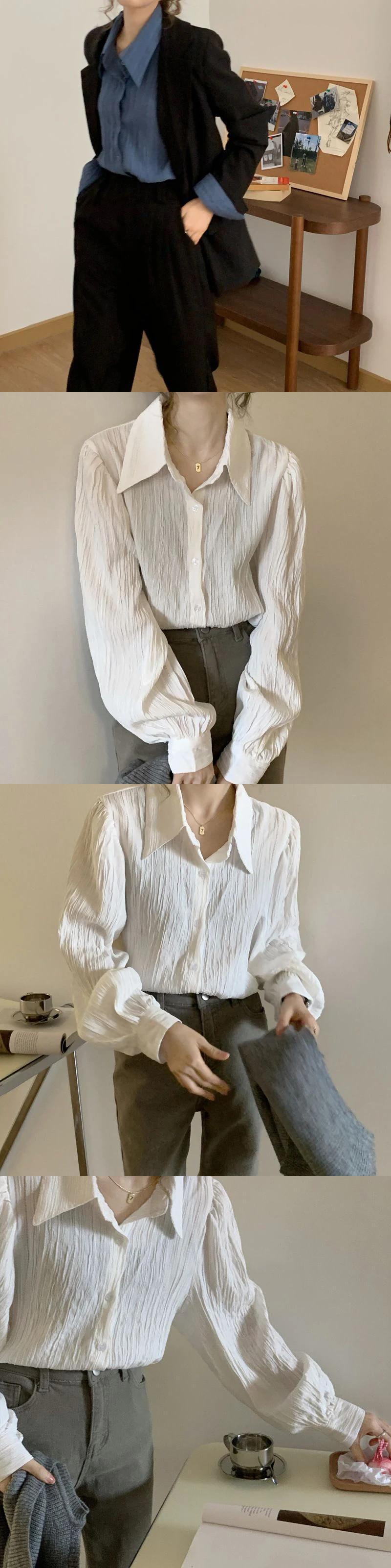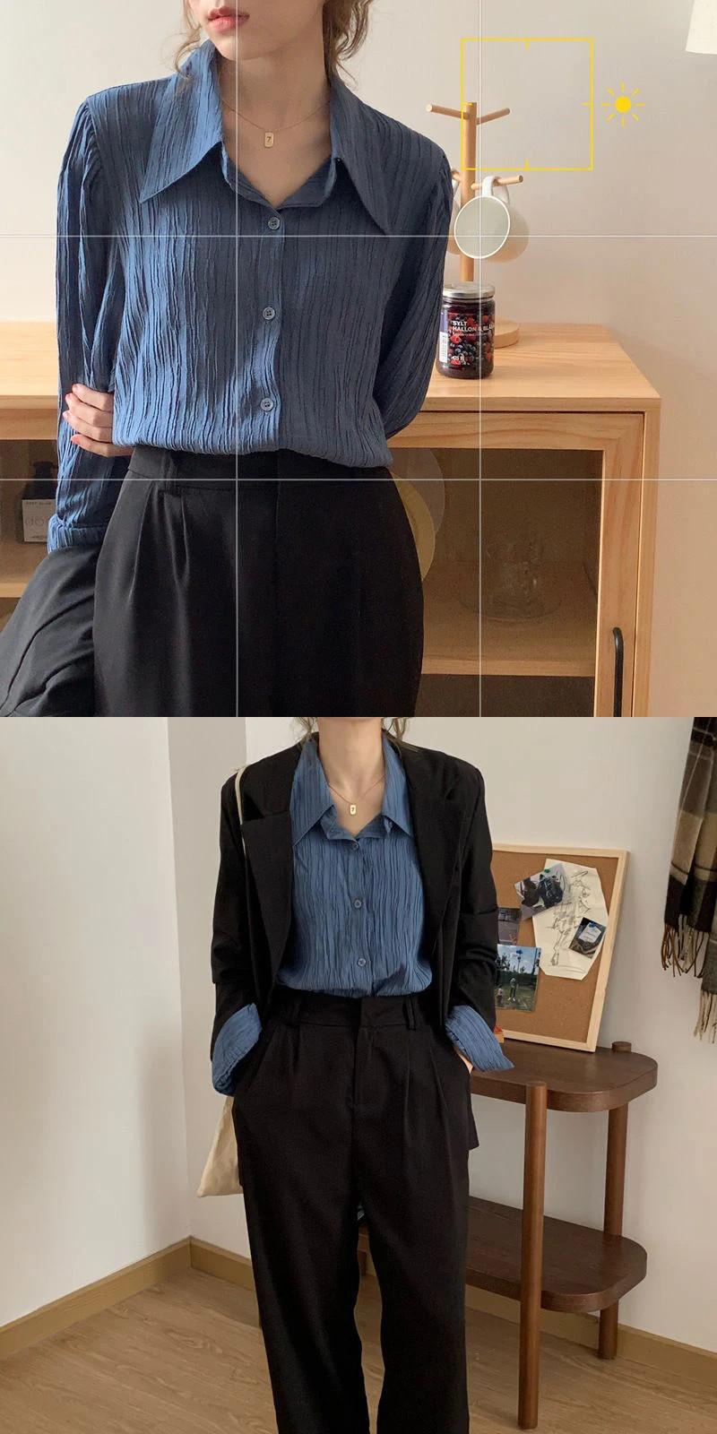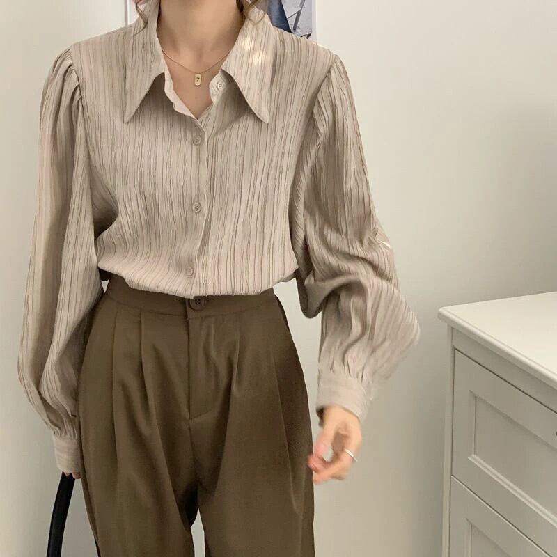 送料無料 Gidyq ストリートウェア女性シャツ折り目ルーズ ブラウス春すべて一致ボタン長袖シャツ ロング スプリング 春物 AE008077610524110247