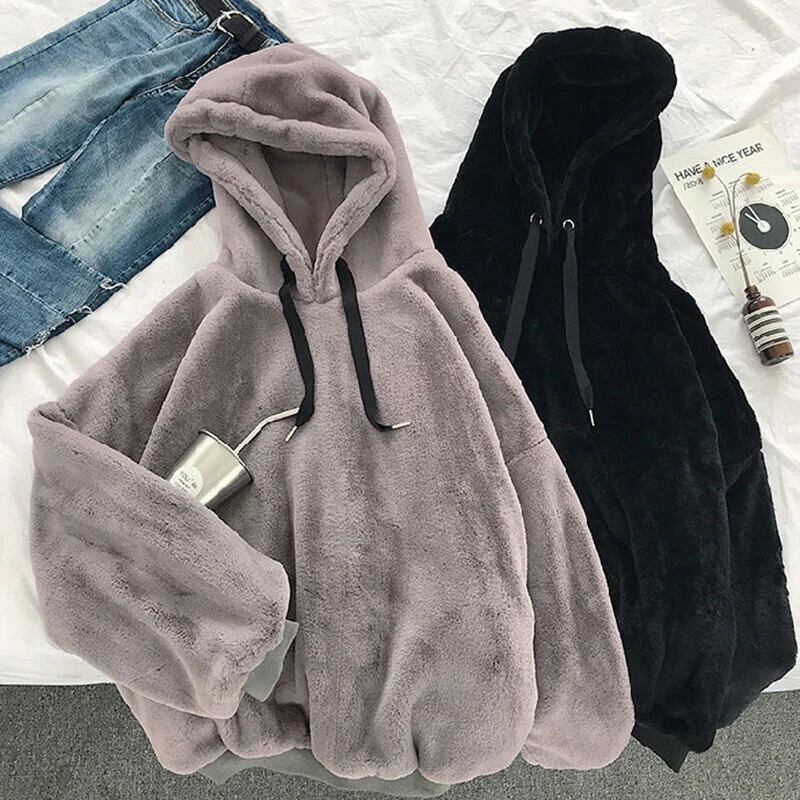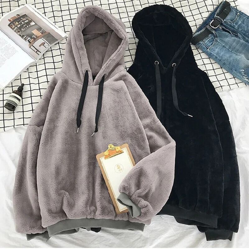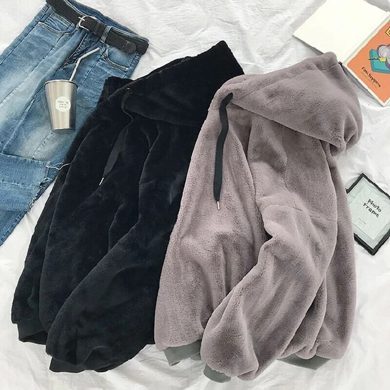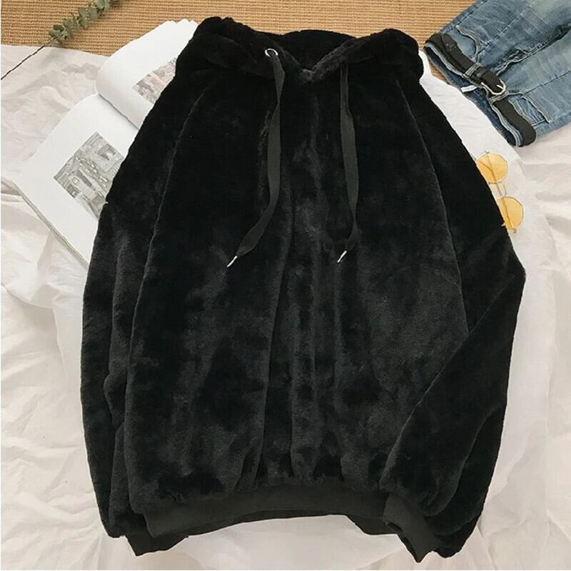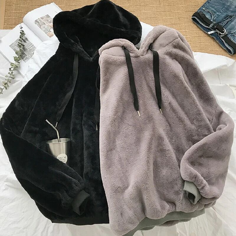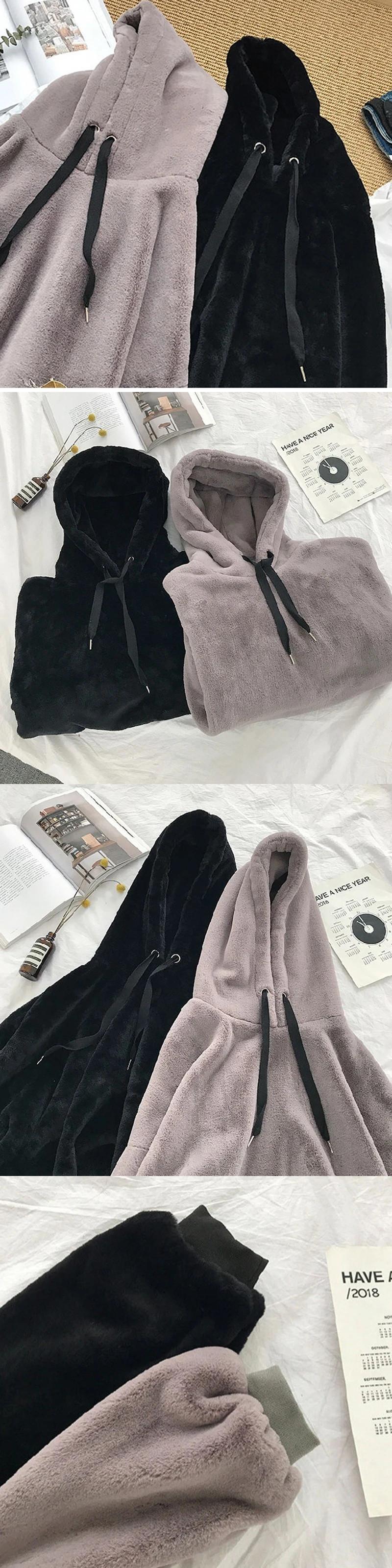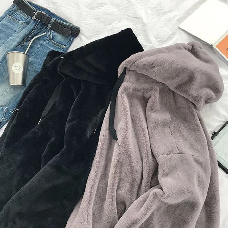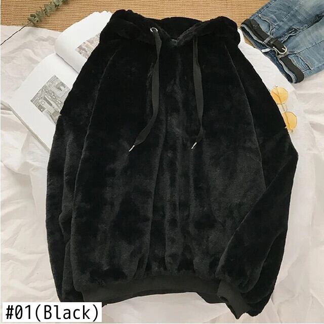 送料無料 Gidyq 冬の女性フェイクウサギのスウェットシャツストリートルーズパーカーすべて一致毛皮のようなプルオーバーコート ウィンター 冬物 ファー AE008077612535368235