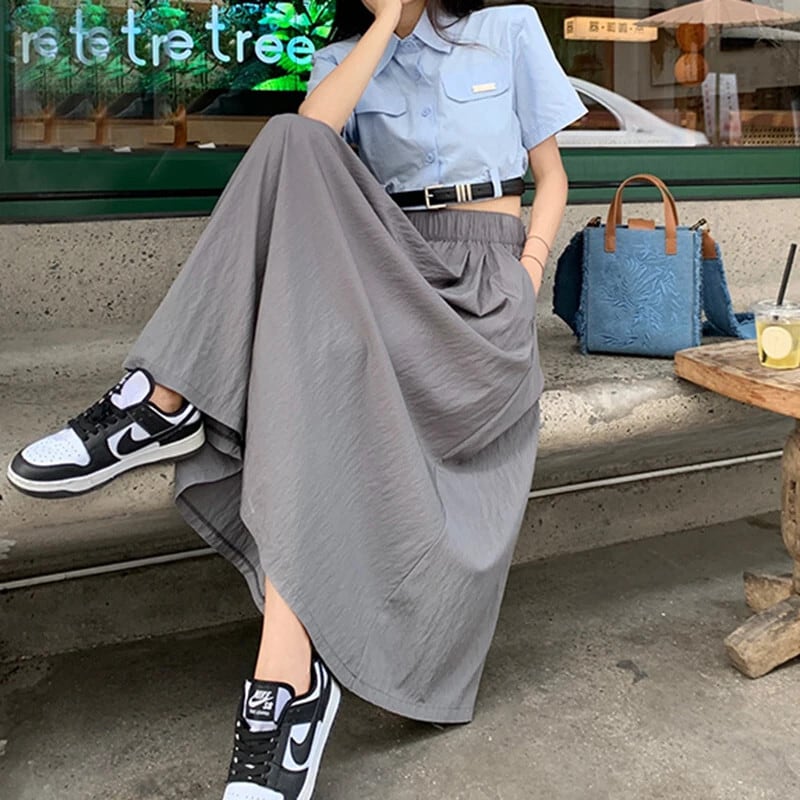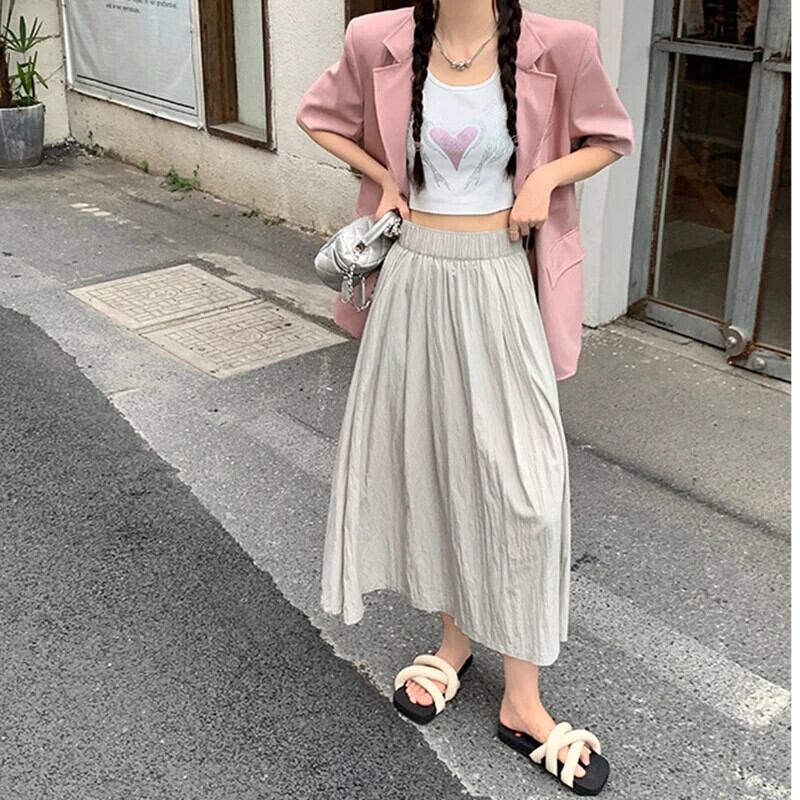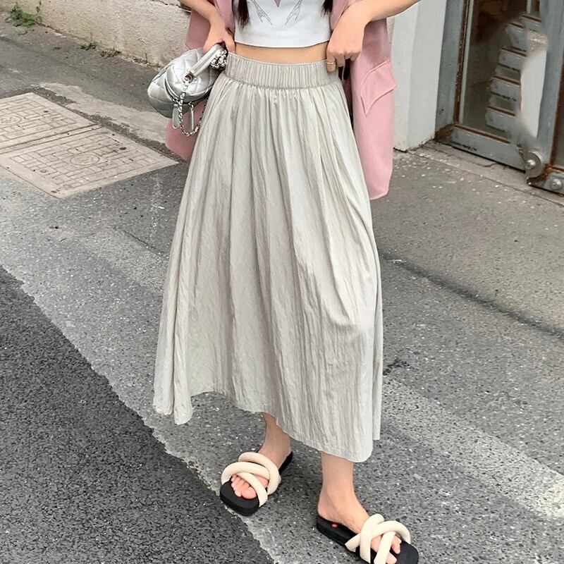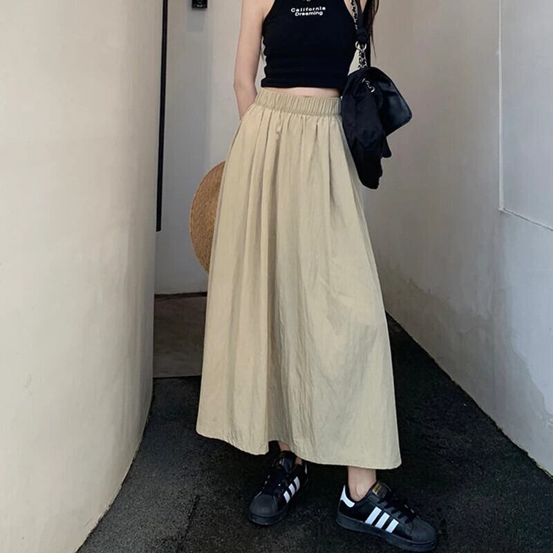 送料無料 Gidyq 女性ひだミディスカートストリートルーズスカート Y2K ウエスト A ラインスカート夏 サマー 夏物 Aライン AE008077670166949424