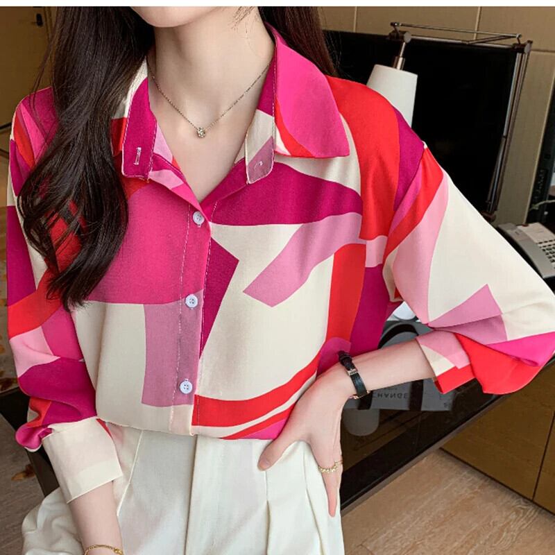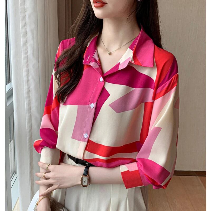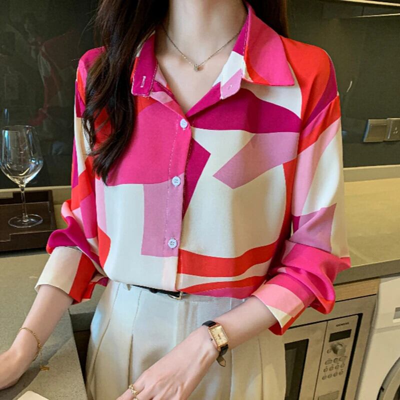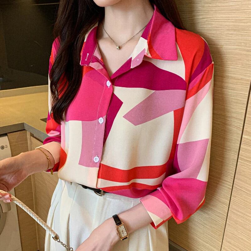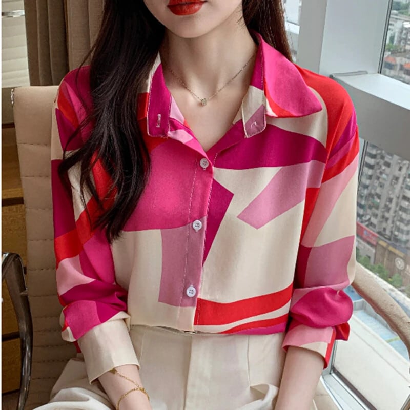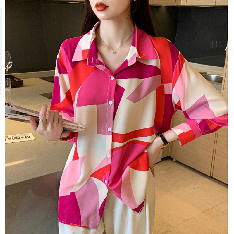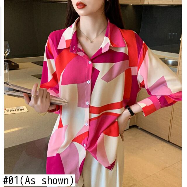 送料無料 Gidyq 女性シャツ ed 幾何学プリント ルーズ ブラウス 春 Y2K すべて一致ストリート シャツ スプリング 春物 AE008077640776866124