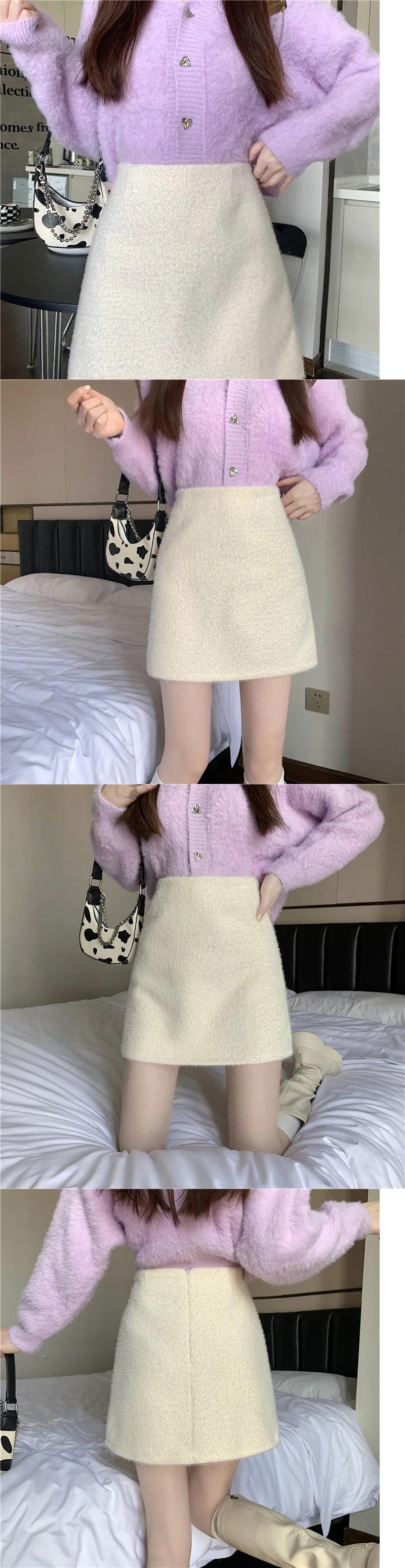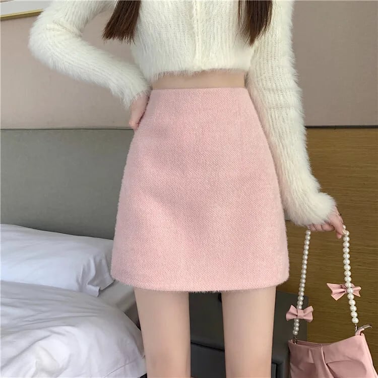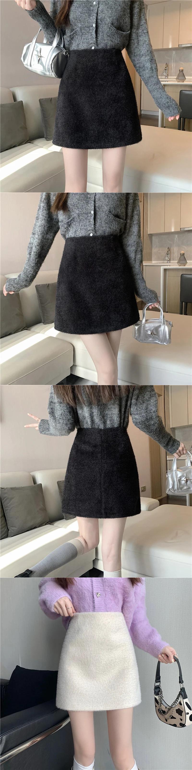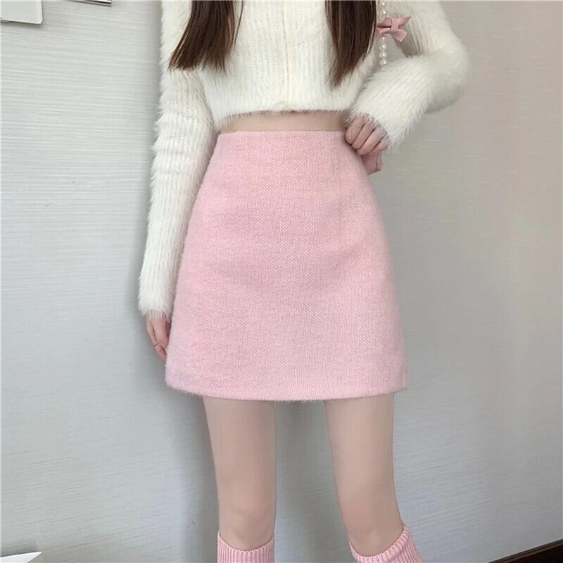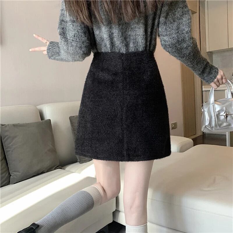 送料無料 Gidyq 女性厚いミニスカートウエスト模造ミンクスカート原宿ミニ A ラインスカート かわいい Aライン AE008077679088966444