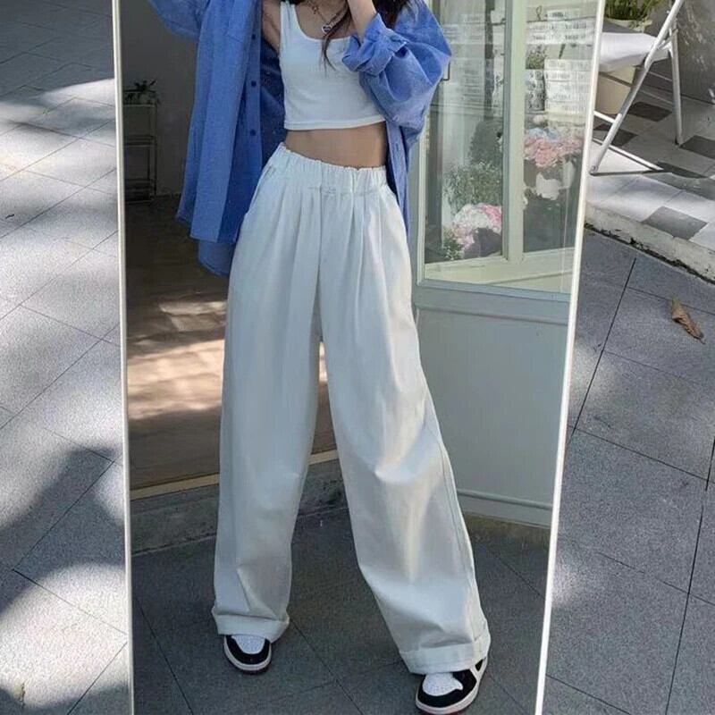 送料無料 Gidyq 女性ウエストワイドレッグパンツスタイルストリートルーズストレートパンツ原宿すべて一致ズボン かわいい ワイドパンツ AE008077631920389037
