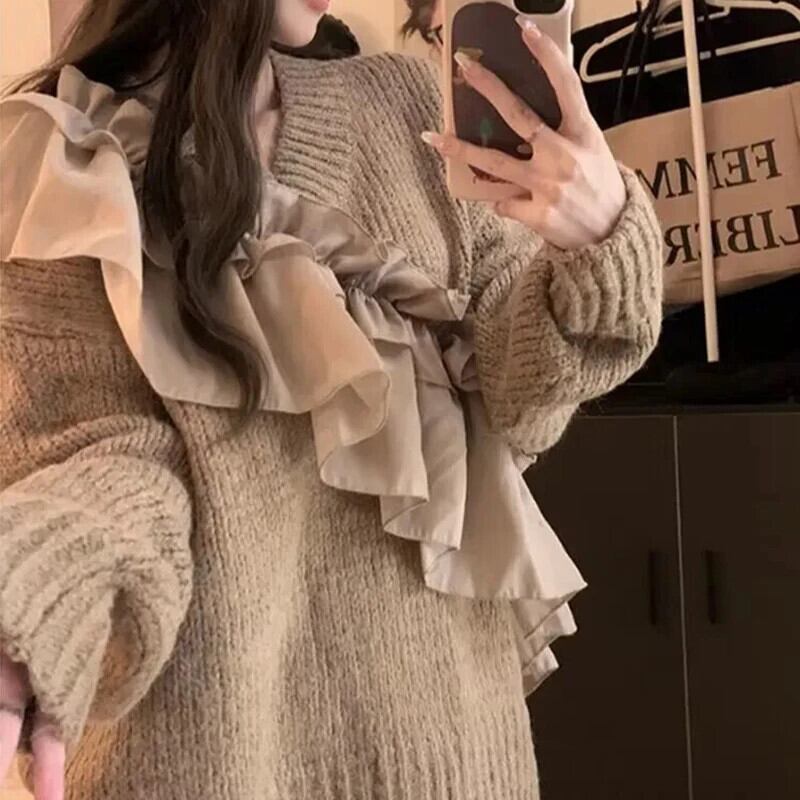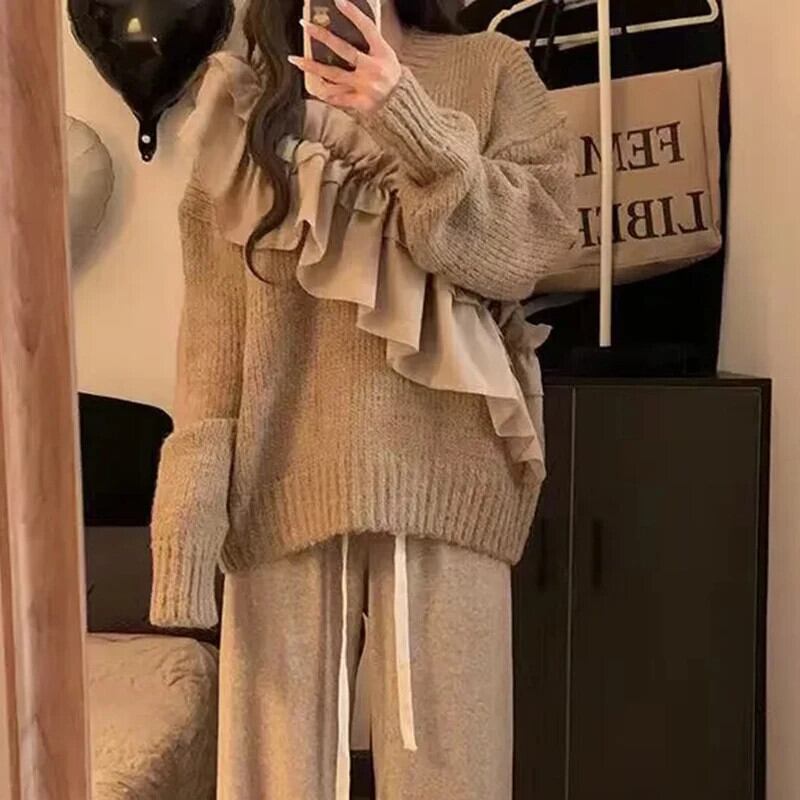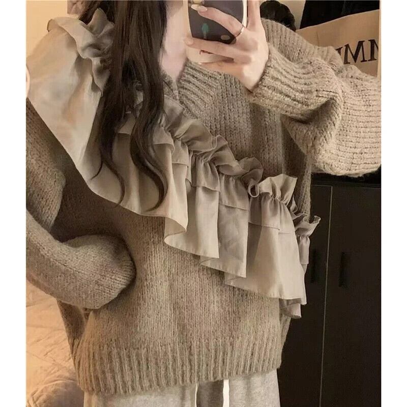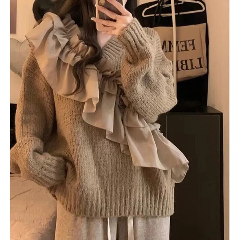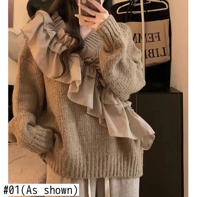 送料無料 Gidyq 女性フリルニットセーターパッチワークルーズジャンパープルオーバートップス秋 オータム 秋物 AE008077688453884061