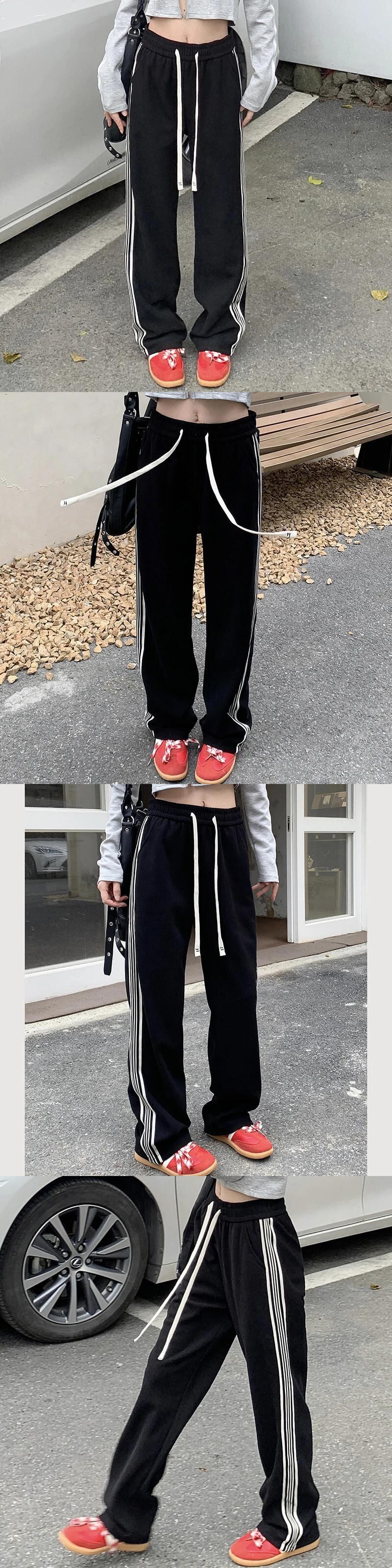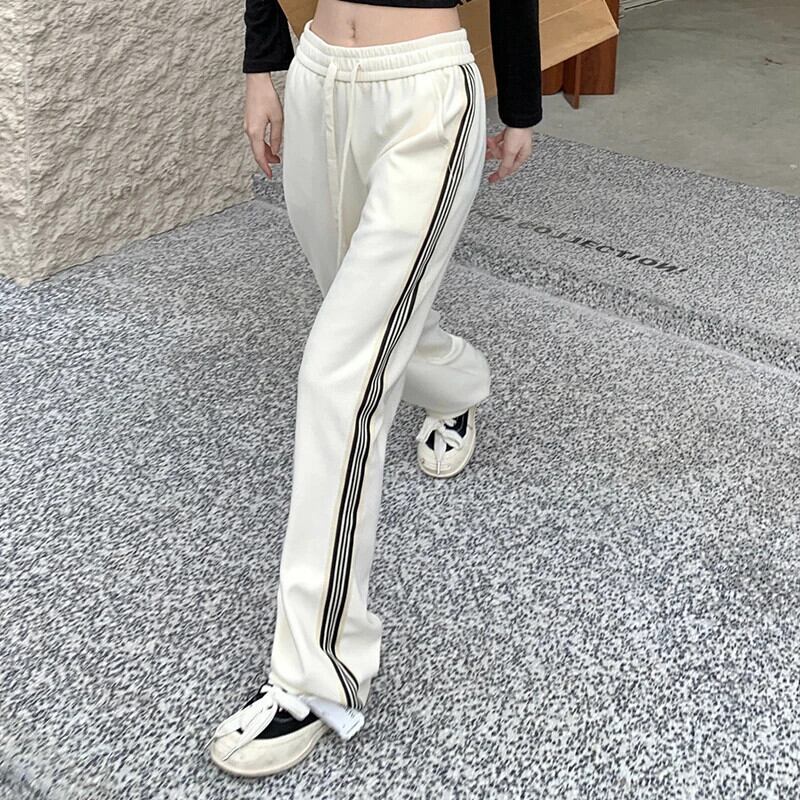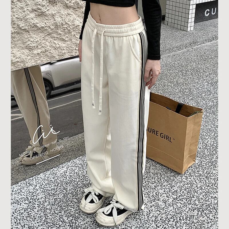 送料無料 Gidyq 秋の女性ワイドレッグパンツすべて一致ストライプルーズパンツウエストストリートストレートパンツ オータム 秋物 ワイドパンツ AE008077670123867794