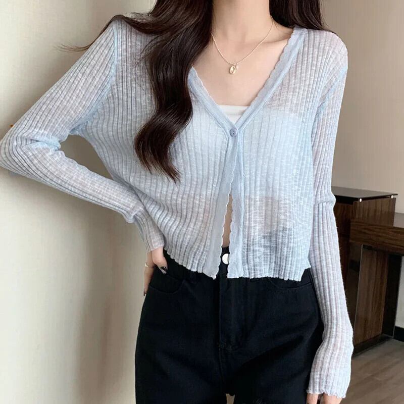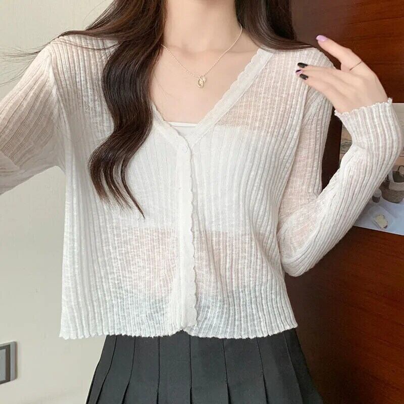 送料無料 Gidyq 女性日焼け防止シャツ夏半透明長袖トップスストリートすべて一致ニットウェア ロング サマー 夏物 AE008077654175472403