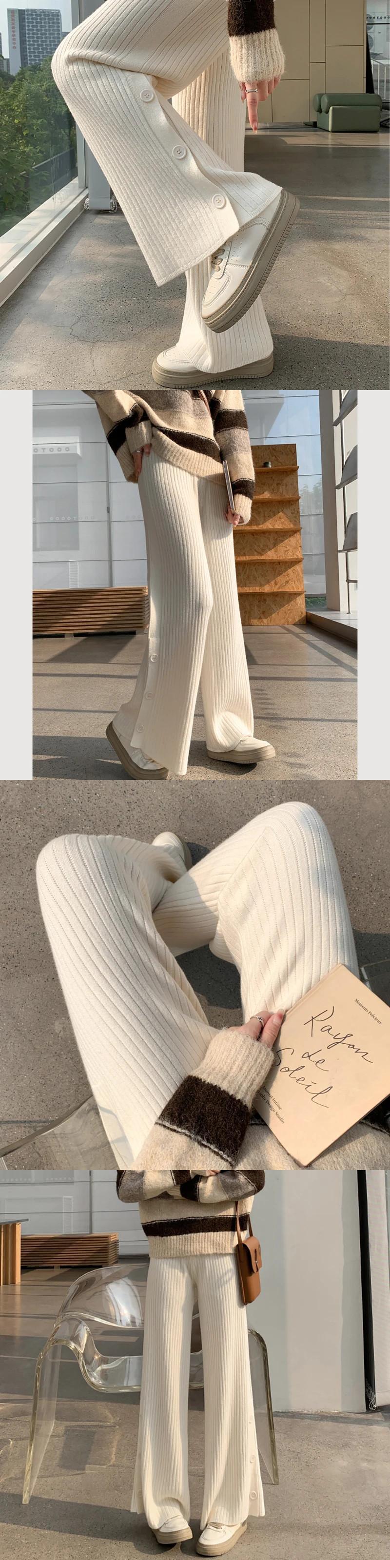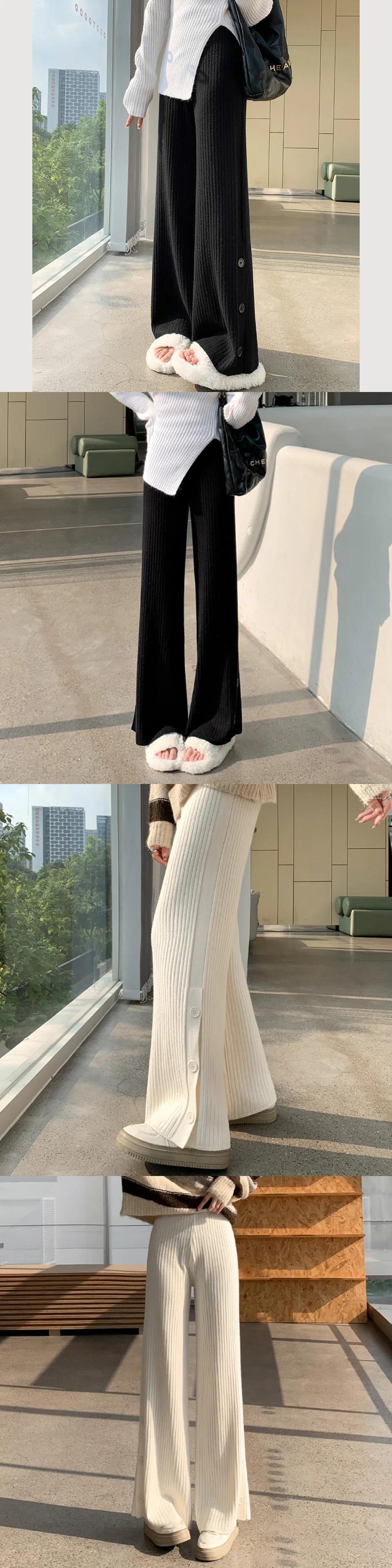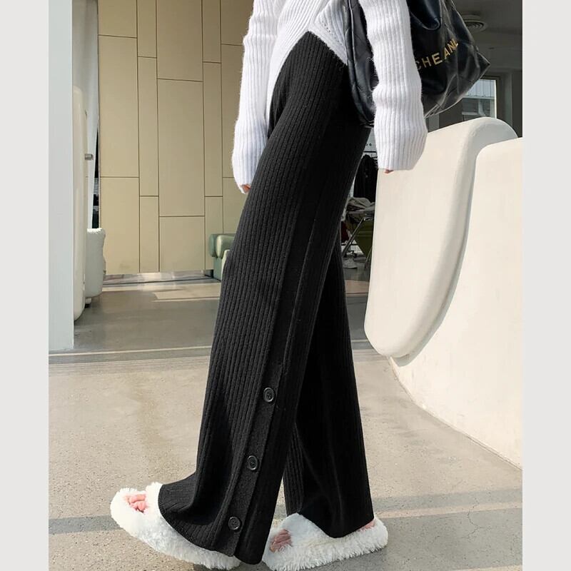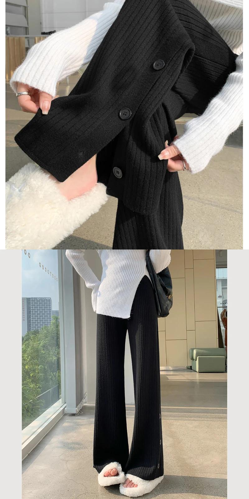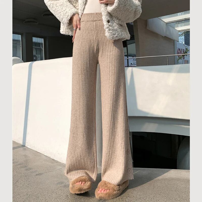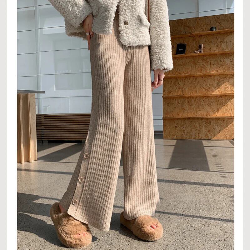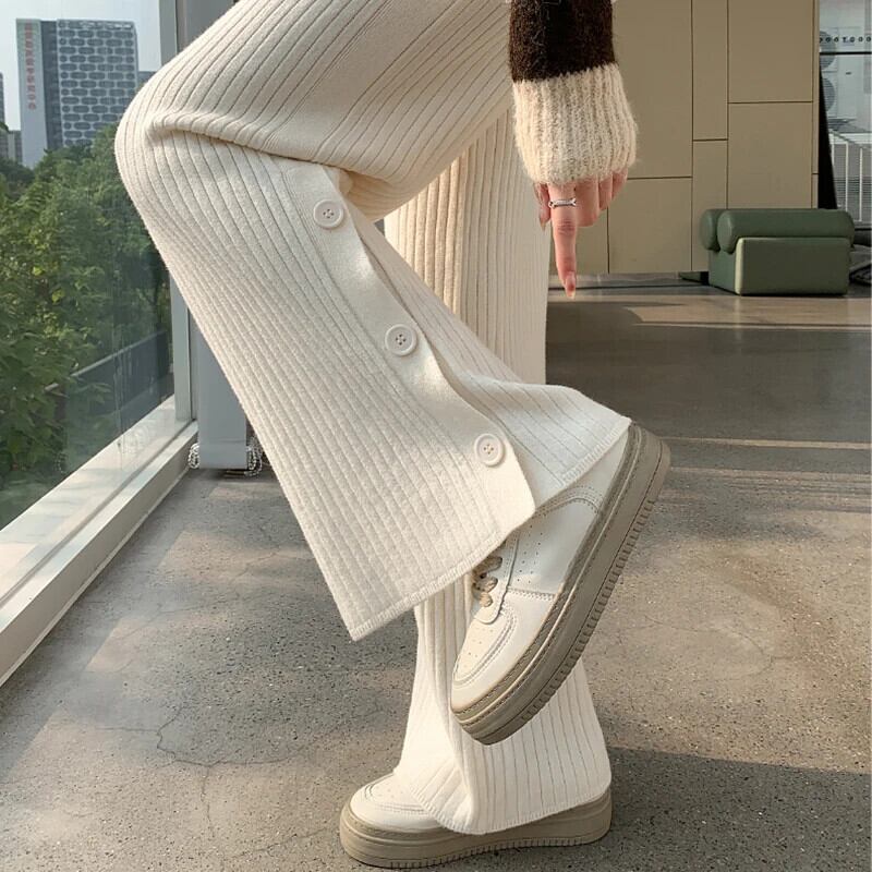 送料無料 Gidyq 女性ワイドレッグパンツオールマッチスリットルーズストレートパンツ秋ストリートウエストニットパンツ オータム 秋物 ワイドパンツ AE008077630000691086