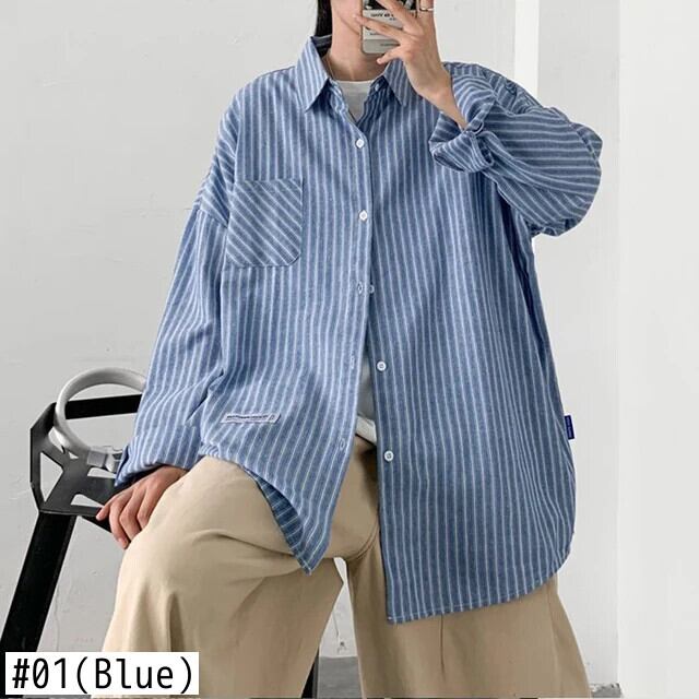 送料無料 Gidyq 女性ストライプシャツ ese ストリート BF ルーズトップス Y2K すべて一致ルーズ長袖シャツ春 ロング スプリング 春物 AE008077647255124812