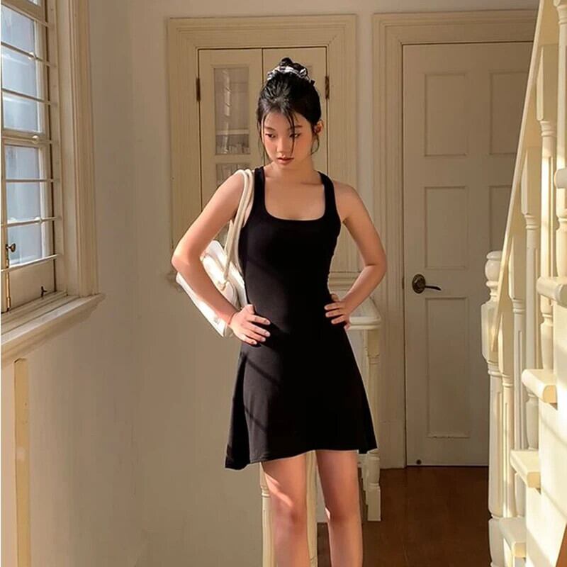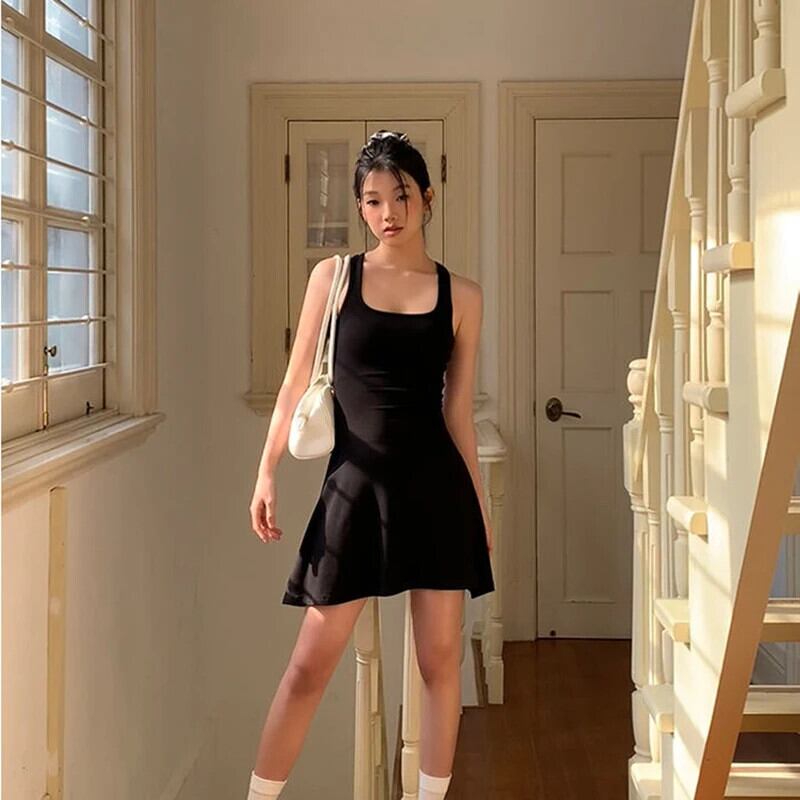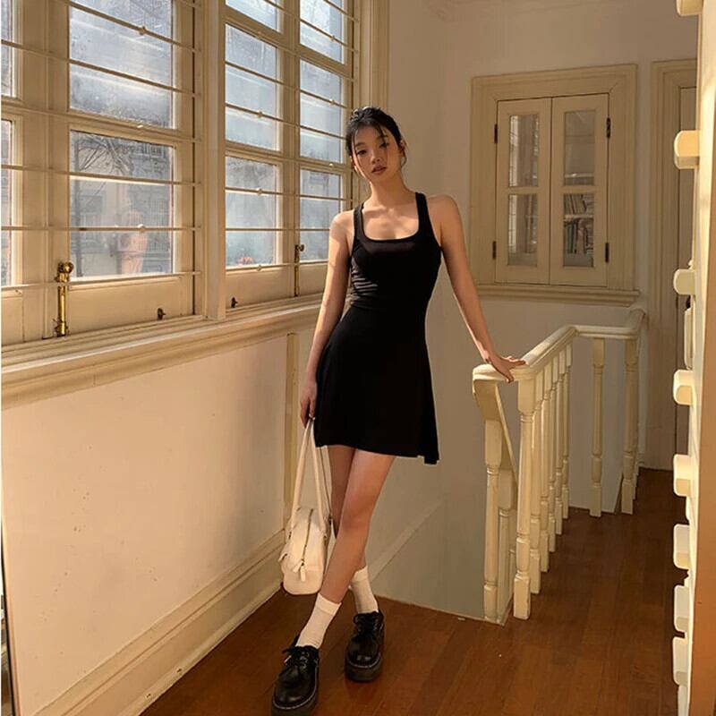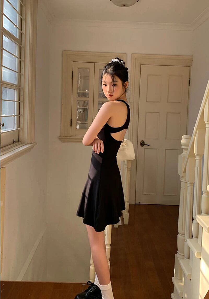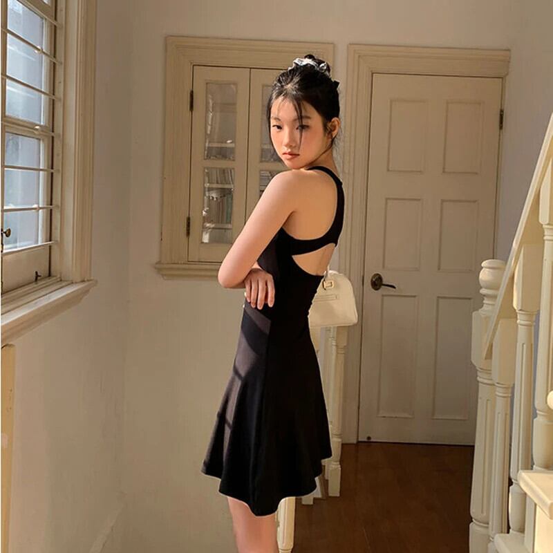 送料無料 Gidyq 綿 100% のセクシーな背中の開いたドレスの女性フレンチ A ラインミニドレス夏黒スリムウエスト Vestidos ブラック コットン サマー 夏物 Aライン AE008077616606901300
