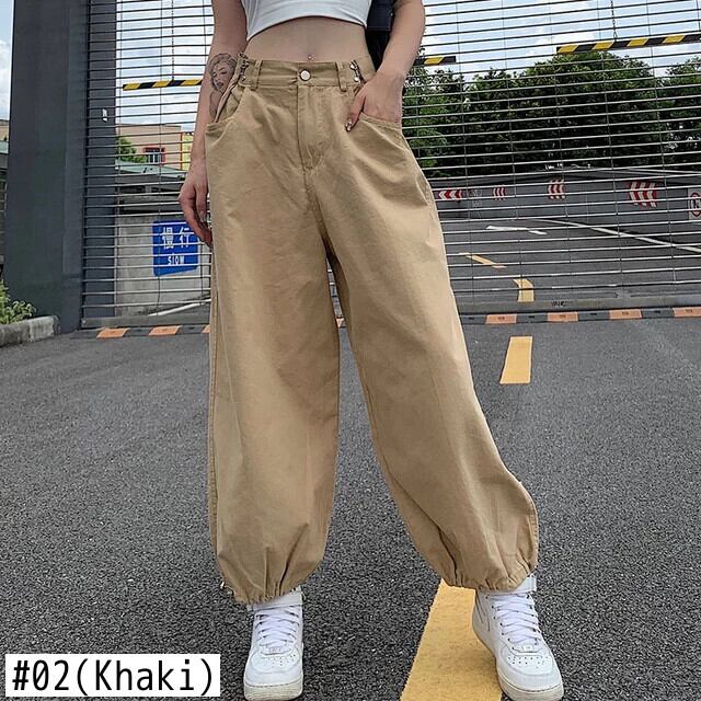送料無料 Gidyq Y2K カーキカーゴパンツ女性ヒップホップストリートワイドレッグパンツルーズズボン ワイドパンツ AE008077640951979026