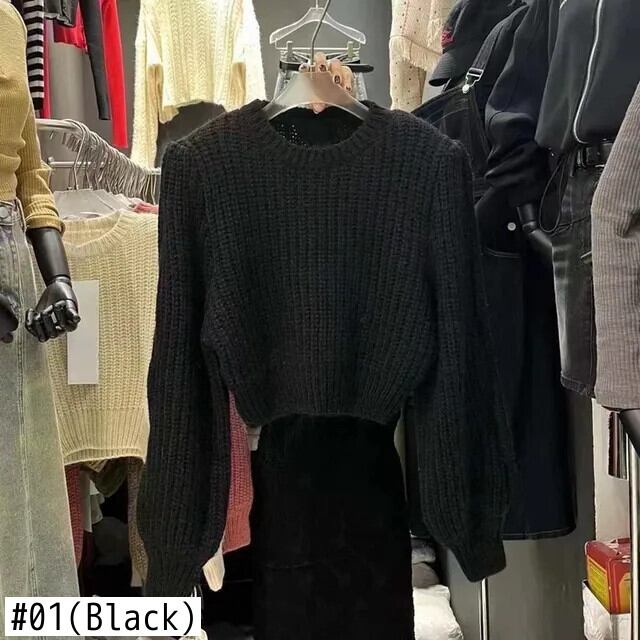 送料無料 Gidyq 女性ニットセーター秋ストリートセクシーなクロップド長袖プルオーバーすべて一致ルーズトップス ロング オータム 秋物 AE008077675605388015