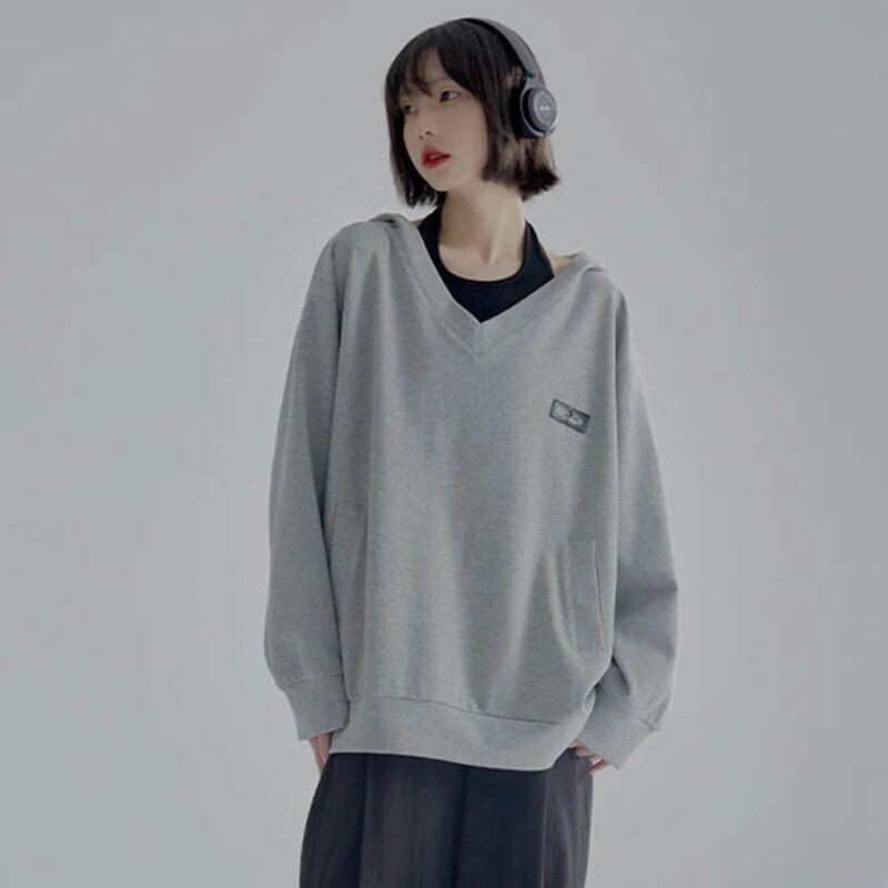 送料無料 Gidyq Y2K 女性ソリッドスウェットシャツストリートルーズパーカー秋すべて一致学生コート オータム 秋物 ソリッドカラー AE008077665045840725