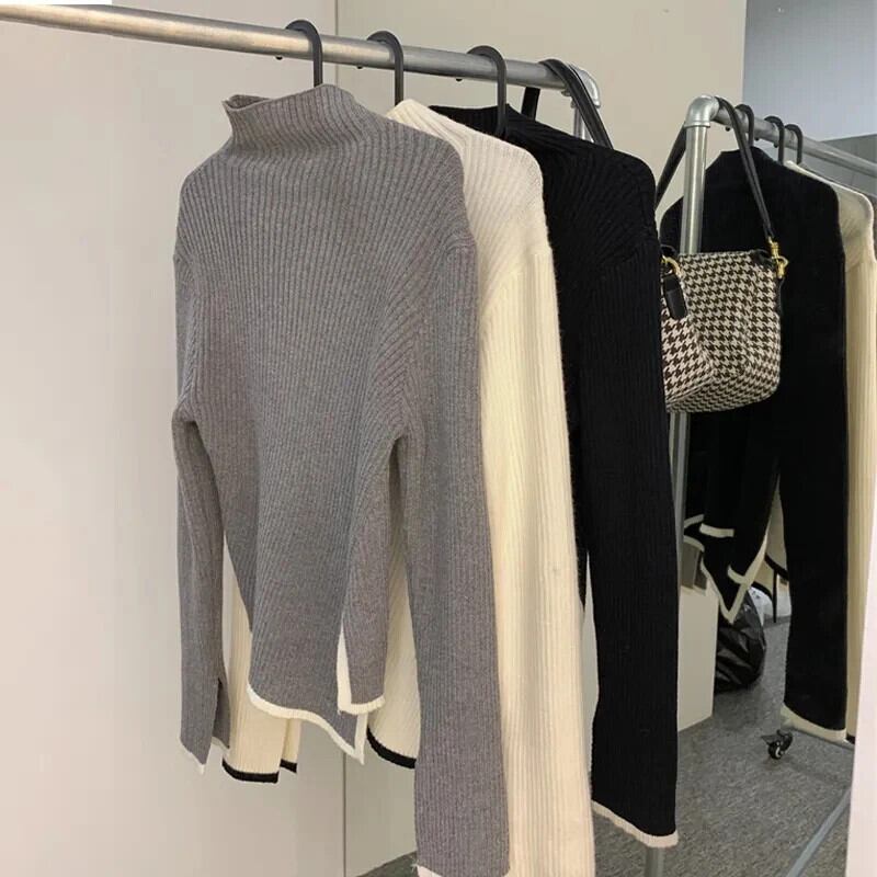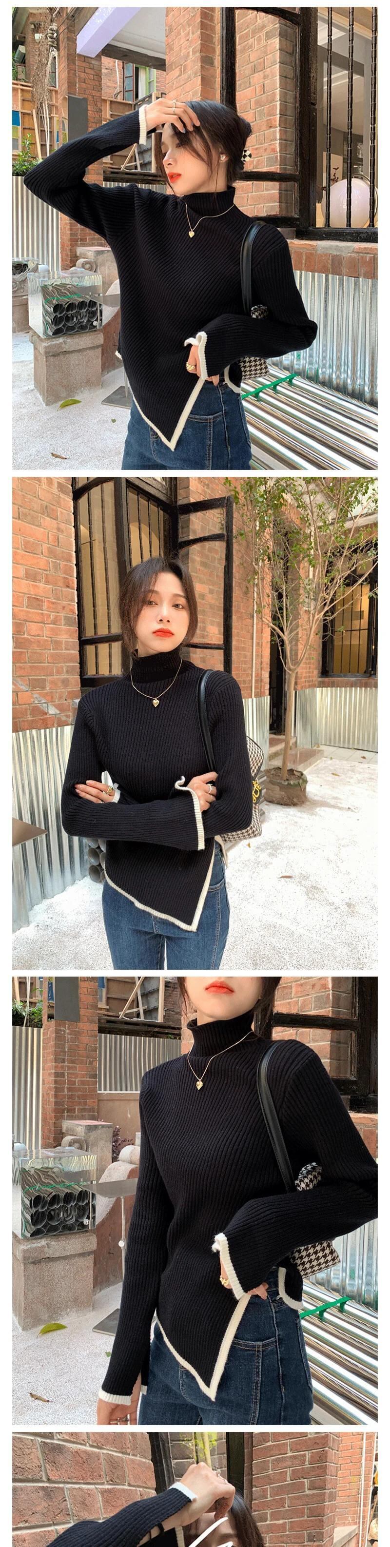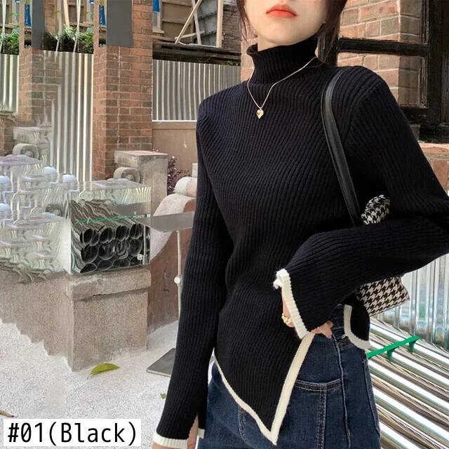 送料無料 Gidyq 女性スリットニットセーター秋パッチワーク長袖トップスすべて一致暖かいジャンパー ロング オータム 秋物 AE008077639632184993