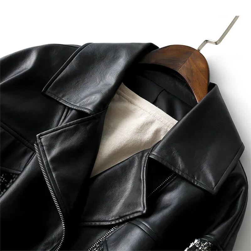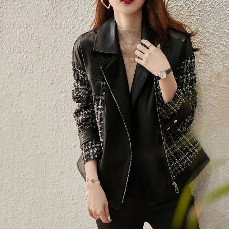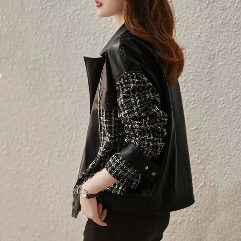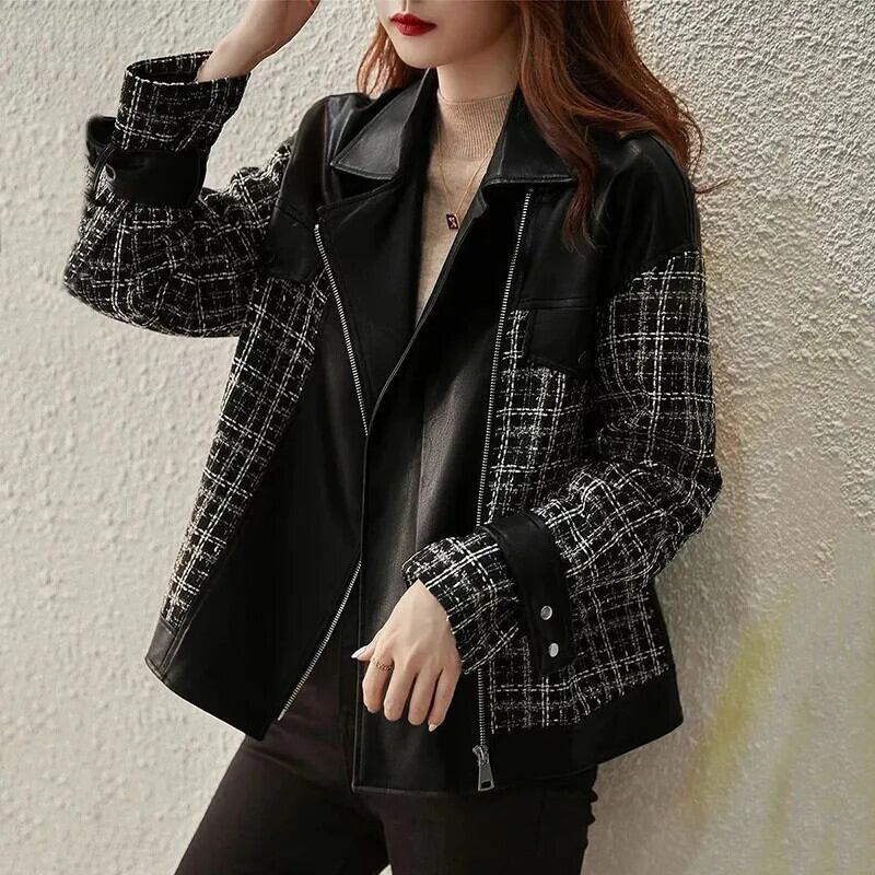 送料無料 Gidyq ストリート女性レザージャケットパッチワークジッパールーズコート暖かい厚いニットアウター AE008077681492586113