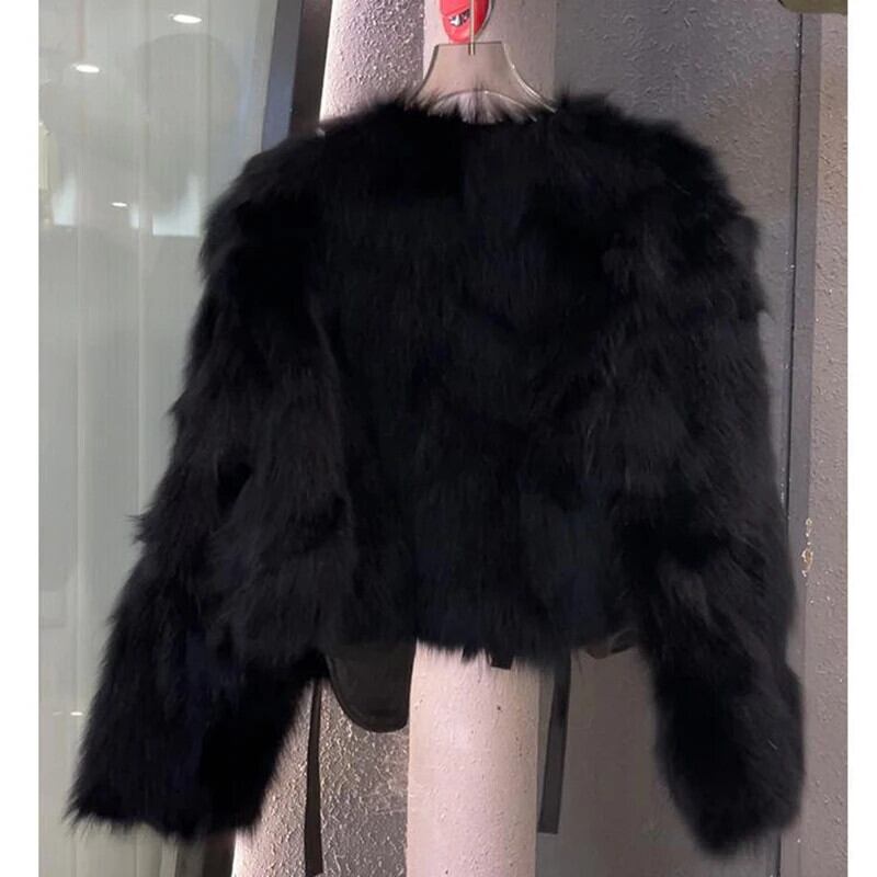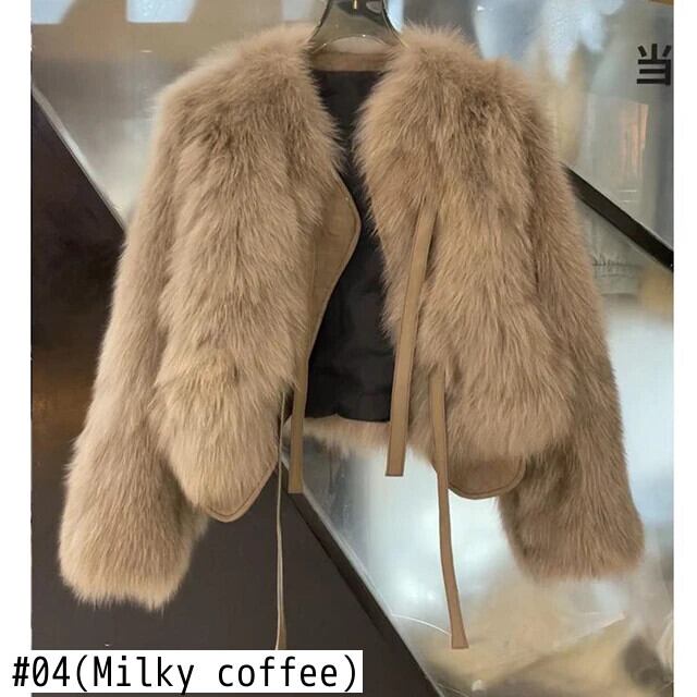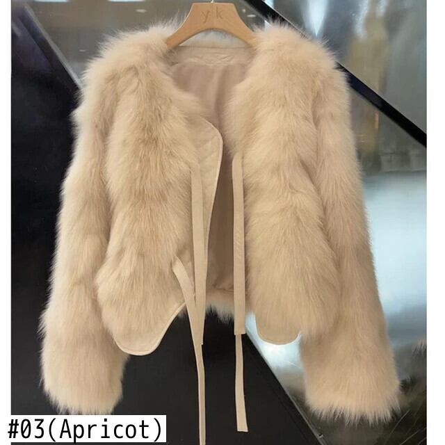 送料無料 Gidyq 女性フェイクフォックスファージャケットストリート包帯ルーズコート冬クロップドぬいぐるみ生き抜く ウィンター 冬物 AE008077617136354904