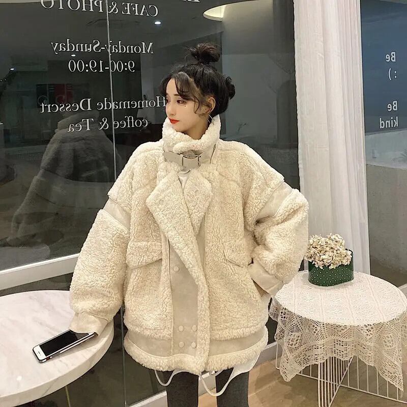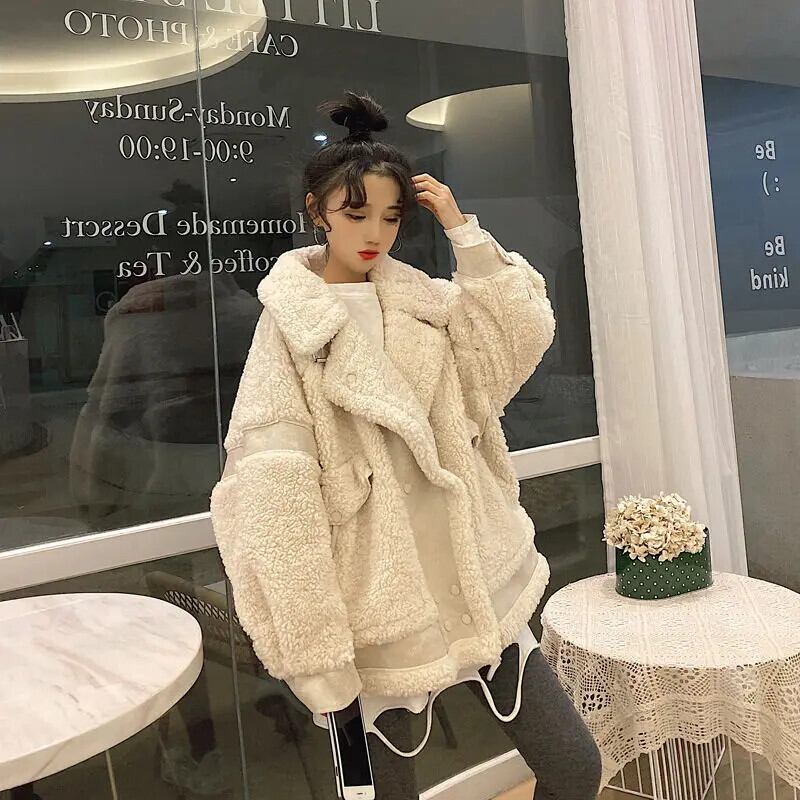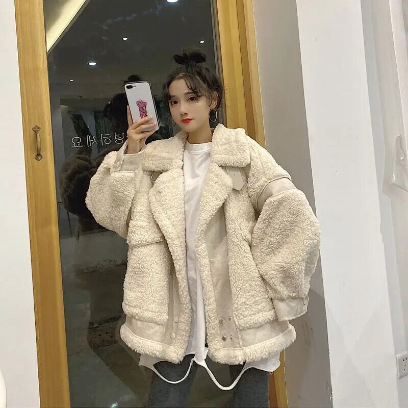 送料無料 Gidyq 女性ラムウールジャケットストリートパッチワーク毛皮のコート冬すべて一致厚く暖かい生き抜く ウィンター 冬物 AE008077692382851067