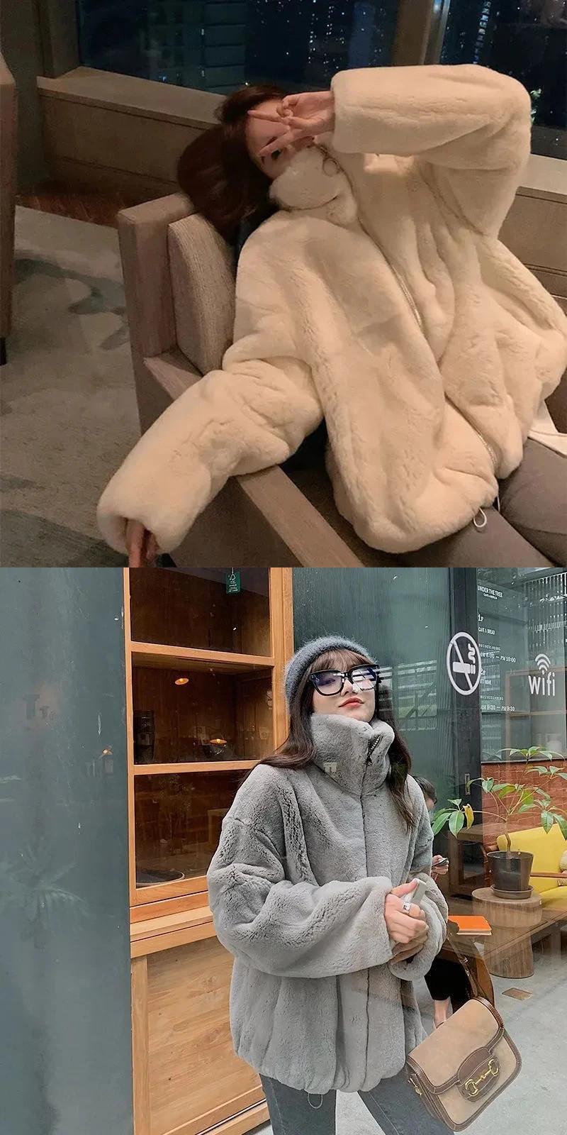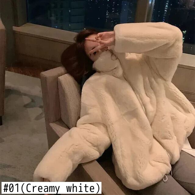 送料無料 Gidyq 女性フェイクラビットダウンコートストリートぬいぐるみジャケット冬厚く暖かいルーズオーバーコート ウィンター 冬物 ファー AE008077664579161714