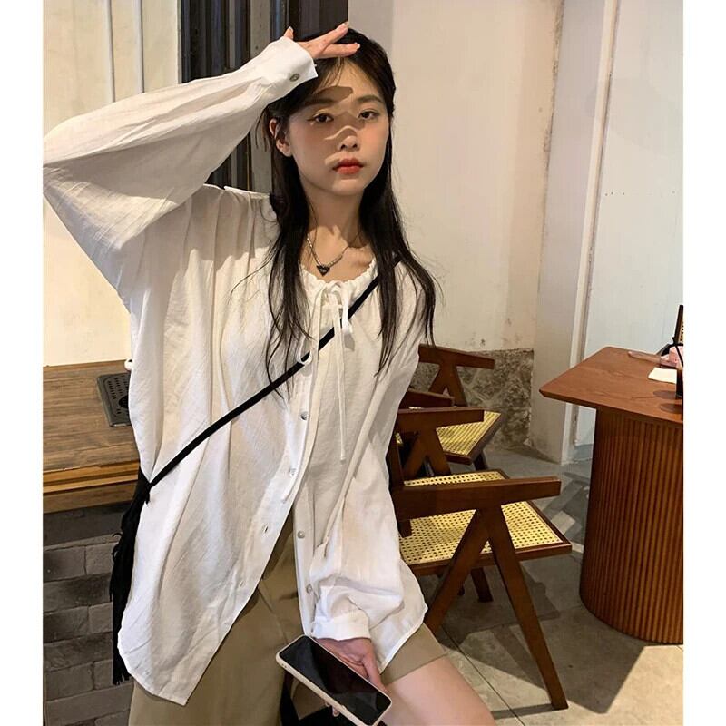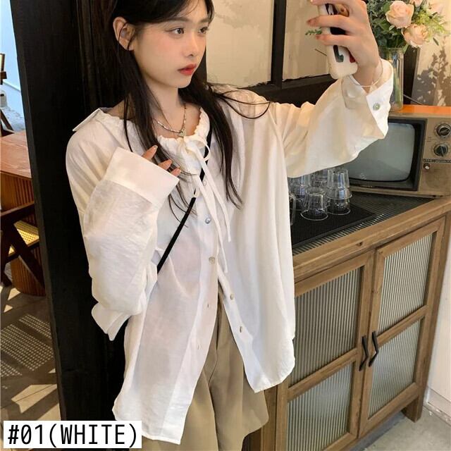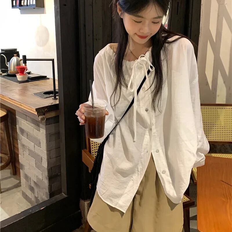 送料無料 Gidyq 夏ストリート女性シャツシックな巾着ルーズトップス Y2K すべて一致ボタン長袖シャツ ロング サマー 夏物 AE008077676610290690