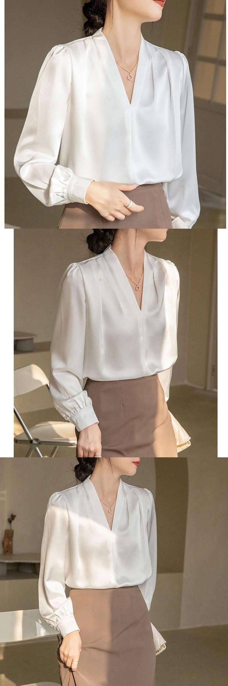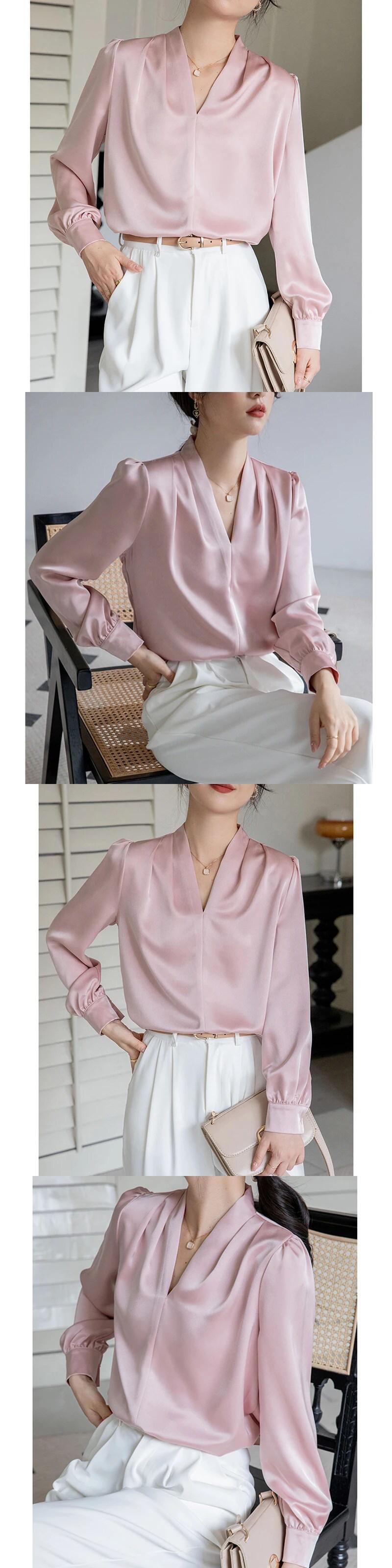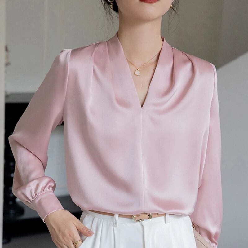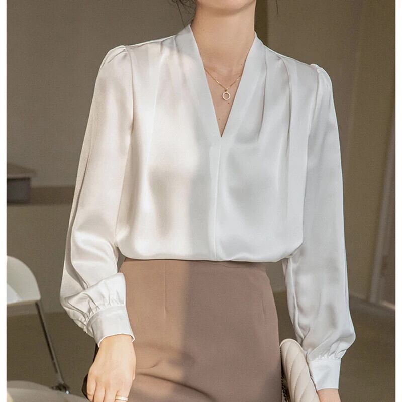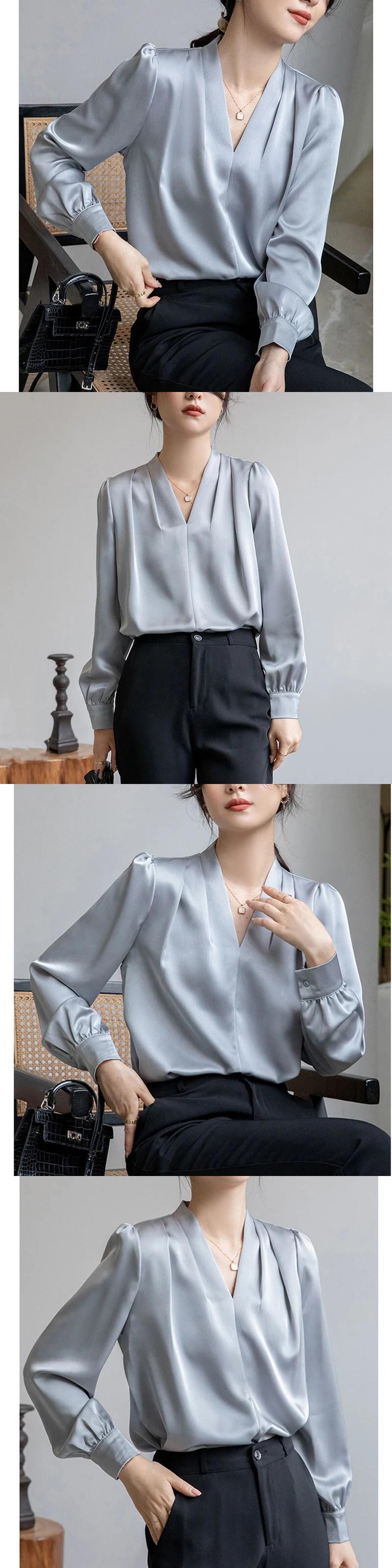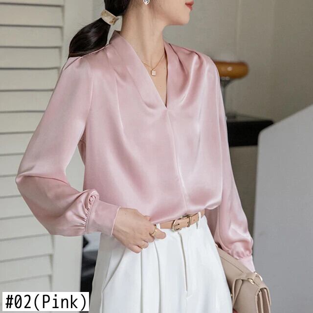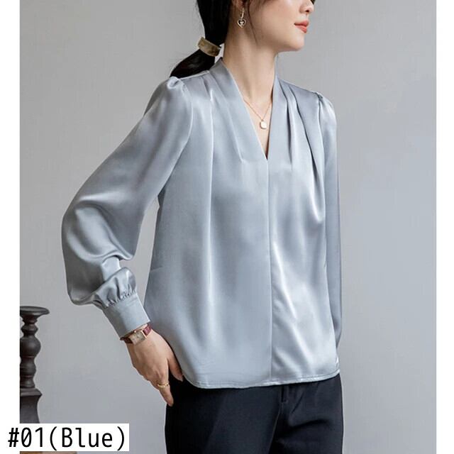 送料無料 Gidyq レディース サテン シャツ オールマッチ ルーズ ブラウス 春 オフィス 長袖シャツ ロング スプリング 春物 会社 学校 通勤や通学にも AE008077639956749172