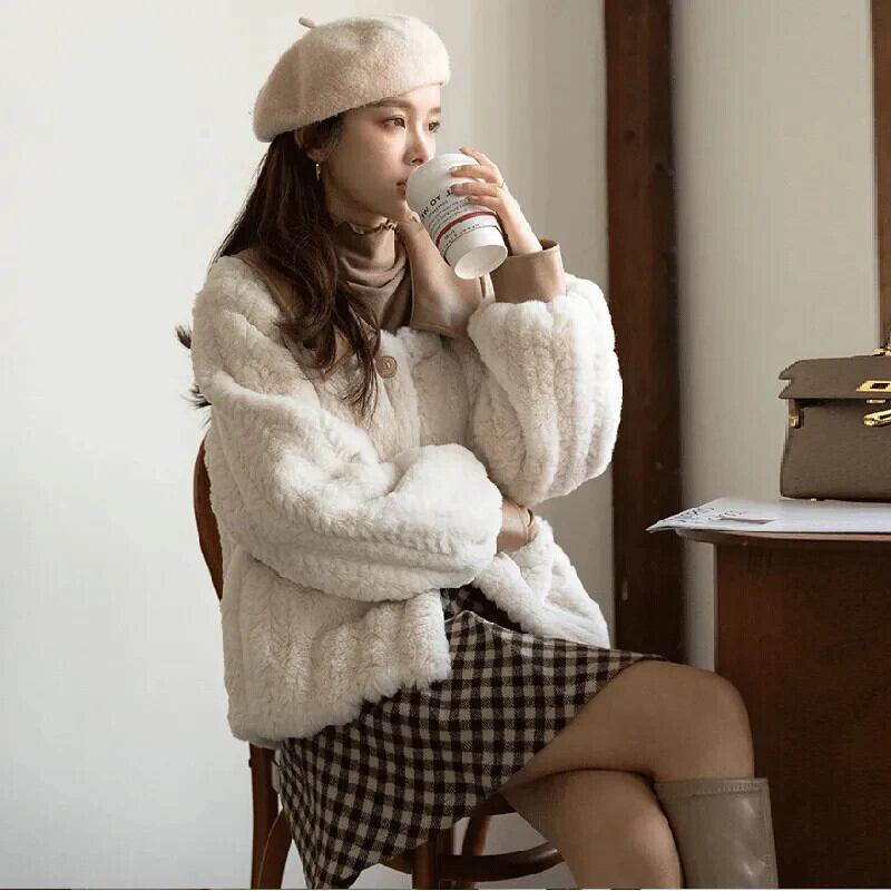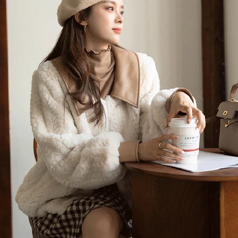 送料無料 Gidyq 女性ラムウールコートストリートパッチワークジャケット冬すべて一致厚く暖かいぬいぐるみ生き抜く ウィンター 冬物 AE008077653129794876