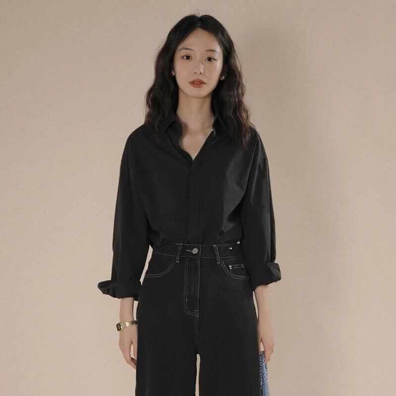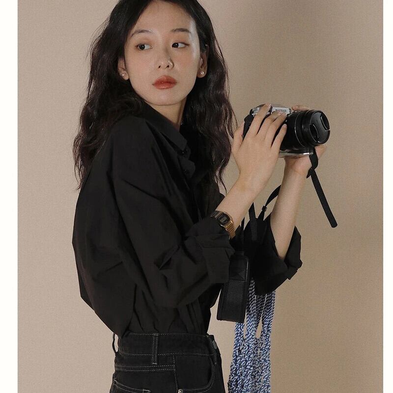 送料無料 Gidyq ストリートウェア レディース シャツ 長袖 トップス すべてマッチ オフィス ルーズ シャツ ロング 会社 学校 通勤や通学にも AE00807764745522349