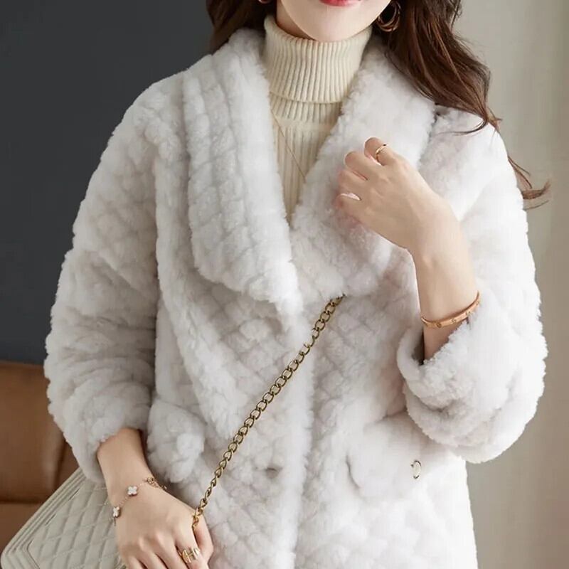送料無料 Gidyq レディース カシミヤ ジャケット ED 粒状 ルーズ アウター ストリート 厚く暖かい コート AE008077697080071830