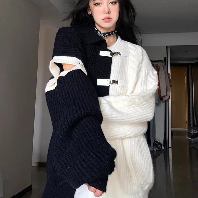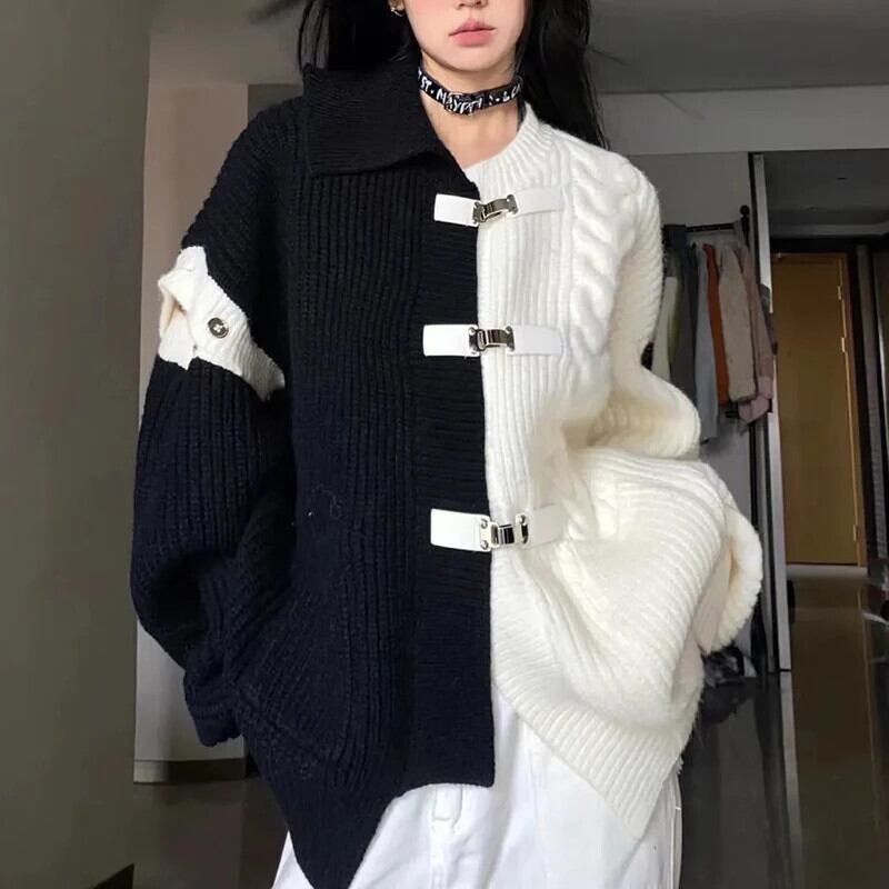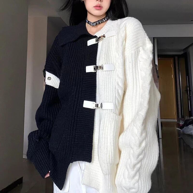送料無料 Gidyq ストリート女性カーディガンセーター秋メタルボタンルーズニットコートすべて一致ジャケット オータム 秋物 AE008077612463576685