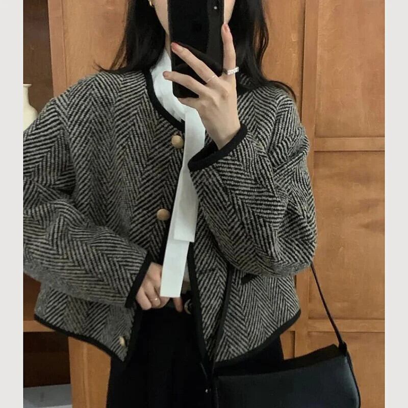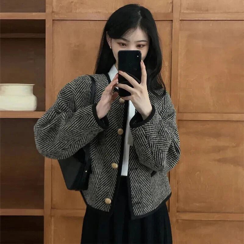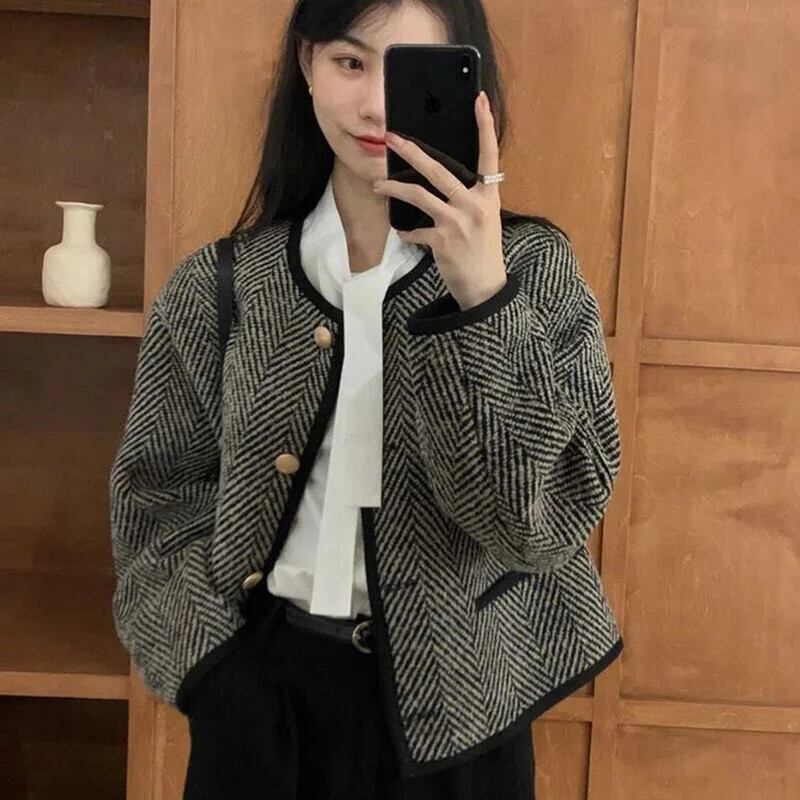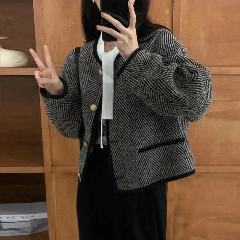 送料無料 Gidyq 女性ジャケット秋ストリートウェアクロップドアウターすべて一致 ed ボタンルーズコート オータム 秋物 AE008077654548460947