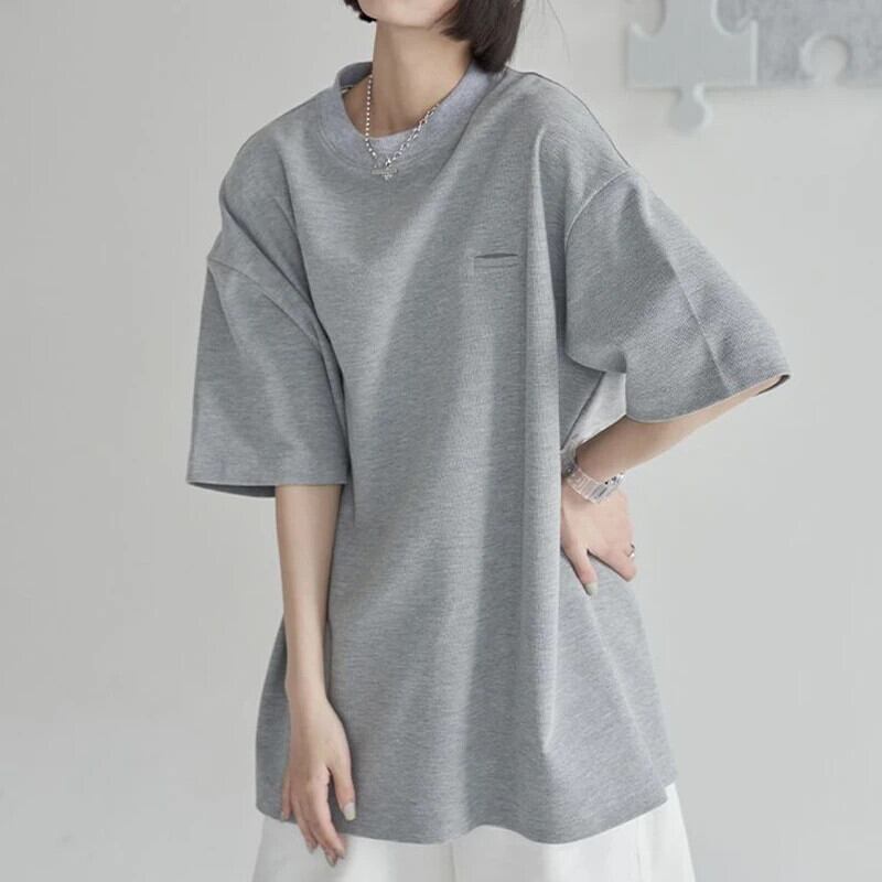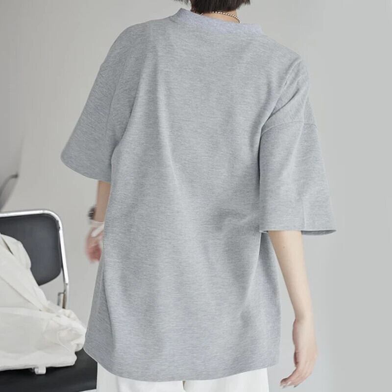 送料無料 Gidyq 女性 T シャツ夏オールマッチ半袖トップスソリッドグレールーズ Tシャツ ショート ハーフスリーブ サマー 夏物 ソリッドカラー AE008077679847687243