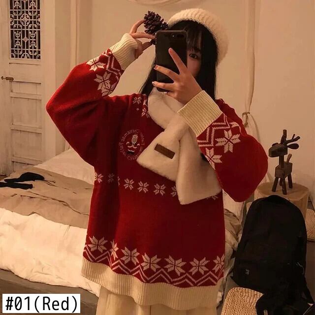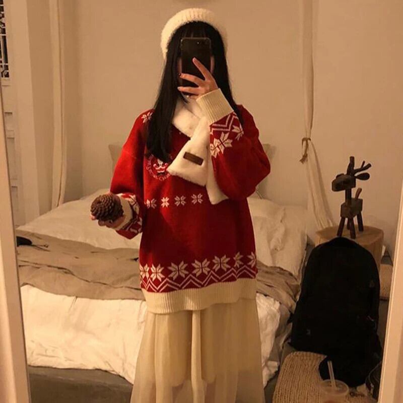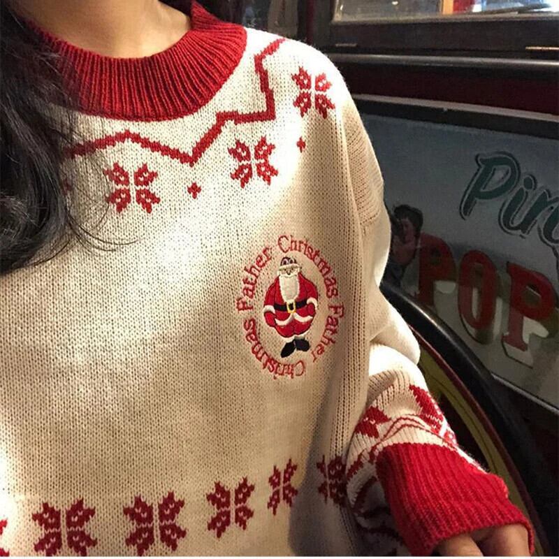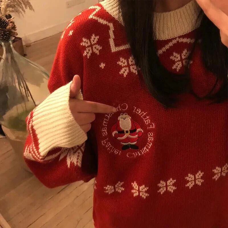 送料無料 Gidyq 女性ニットセーターヴィンテージサンタクロース刺繍ルーズジャンパー Y2K 学生プルオーバートップ春 スプリング 春物 ビンテージ AE00807766286873734