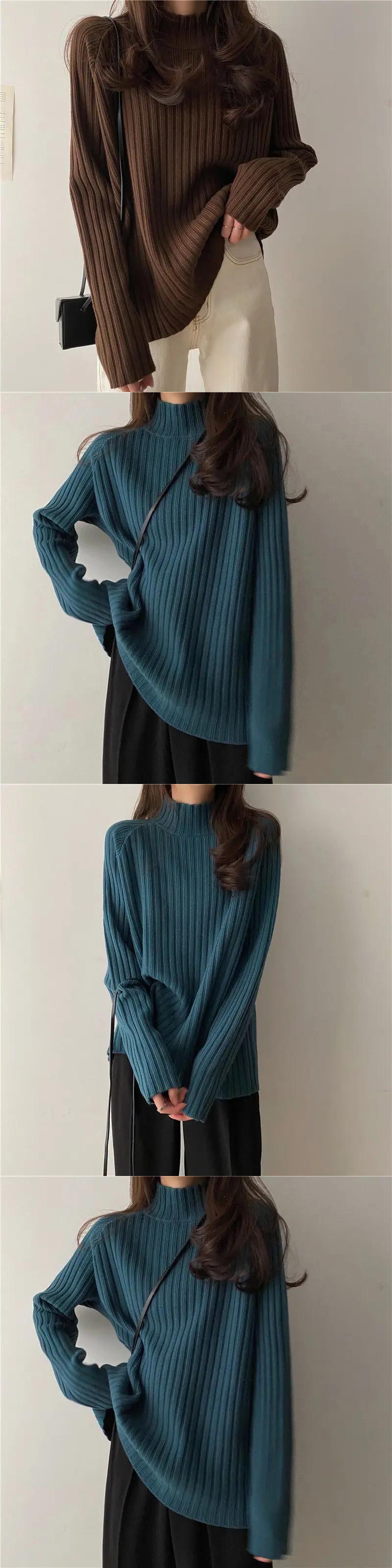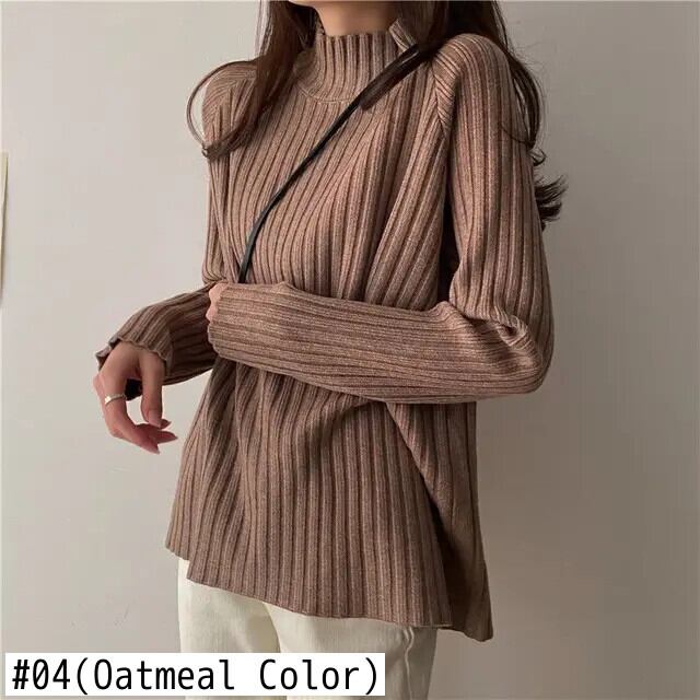 送料無料 Gidyq 秋の女性の暖かいニットセーターストライプルーズ長袖トップスすべて一致ジャンパー ロング オータム 秋物 AE008077667810467616