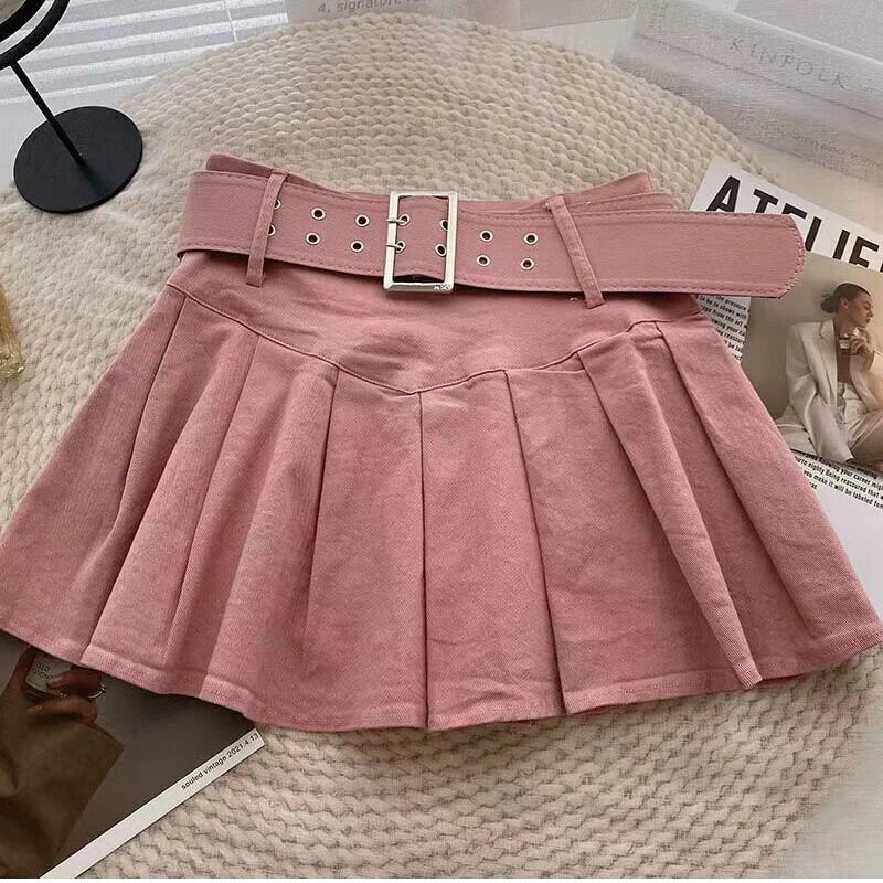 送料無料 Gidyq 女性ウエストプリーツスカート春ストリートベルトミニスカート Y2K すべて一致ジッパーピンク A ラインスカート スプリング 春物 ハーネス Aライン AE008077666469391816