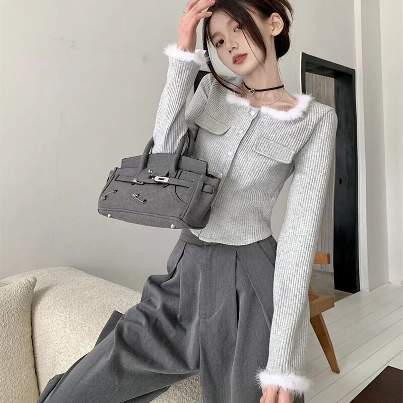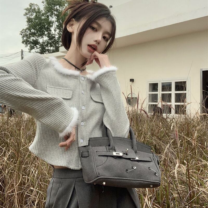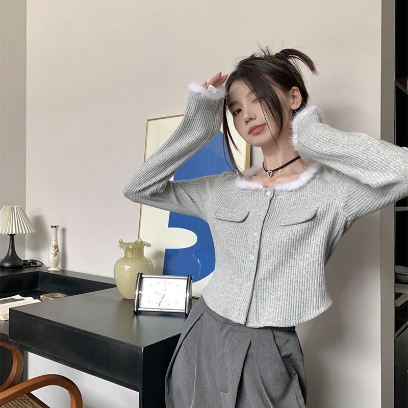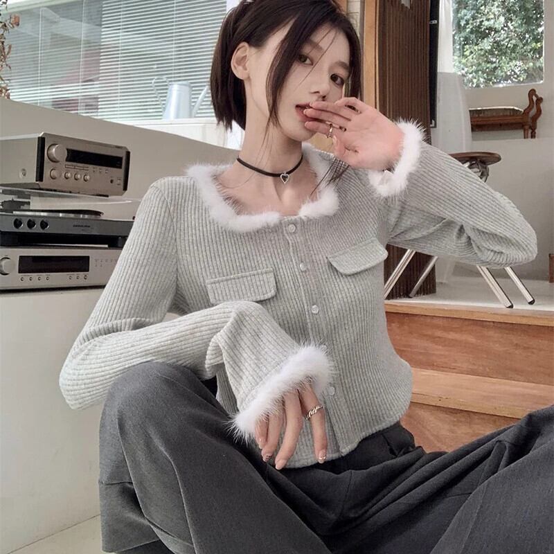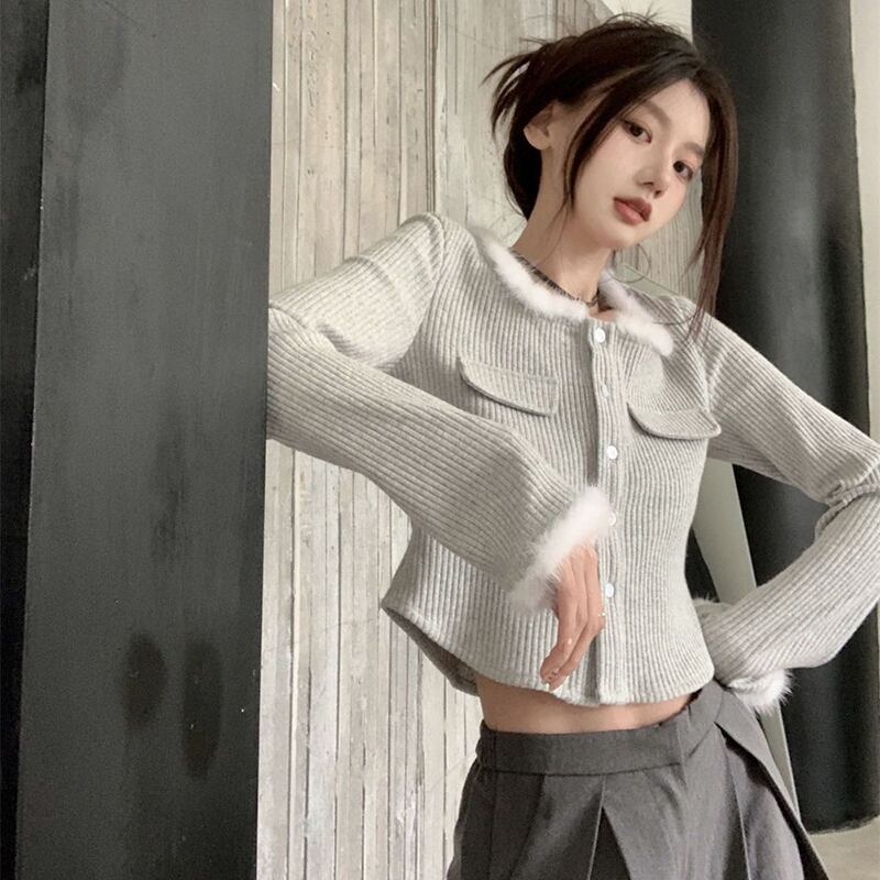 送料無料 Gidyq 秋の女性カーディガンセーターパッチワークスリムフィットクロップドニットトップスボタンローエッジジャケット オータム 秋物 AE008077611680285320