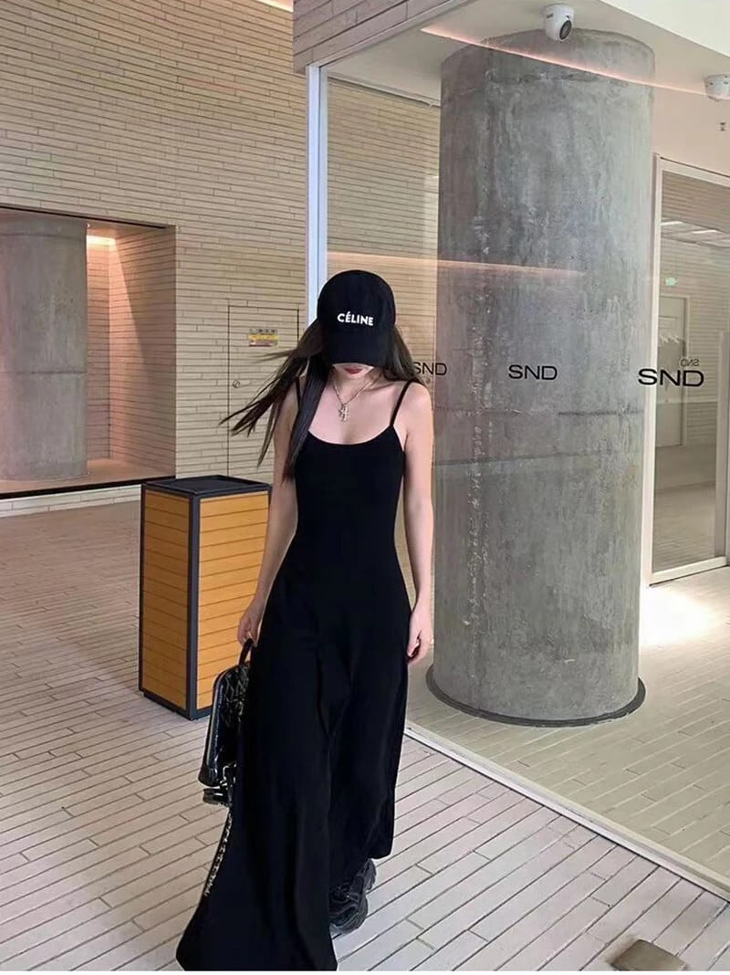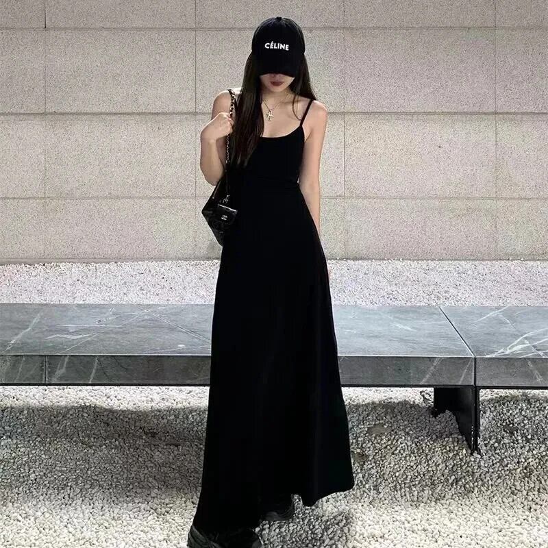 送料無料 Gidyq 黒のセクシーな背中の開いたスパゲッティトラップドレス女性スリムドレス夏ソリッドウエスト Vestidos ブラック サマー 夏物 ソリッドカラー AE008077638316268272