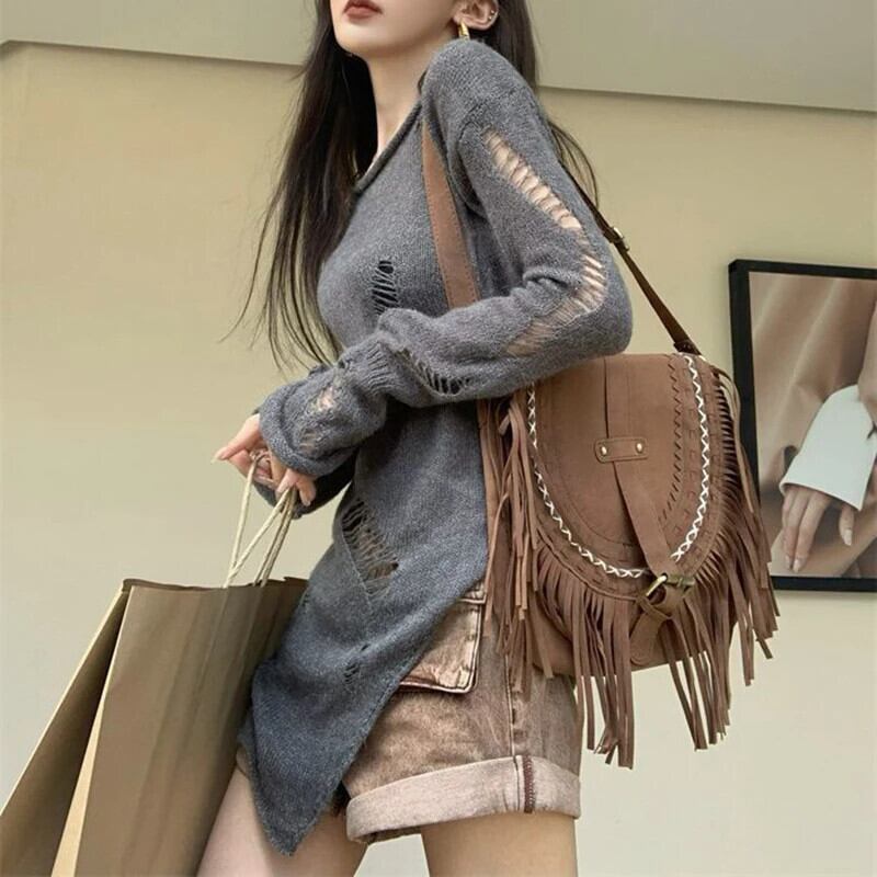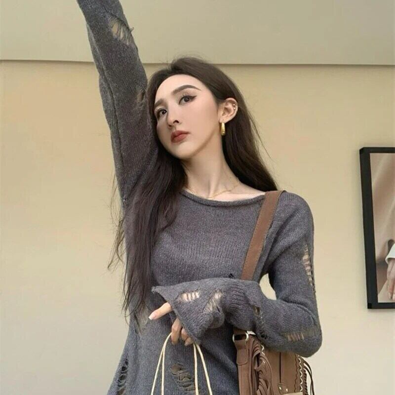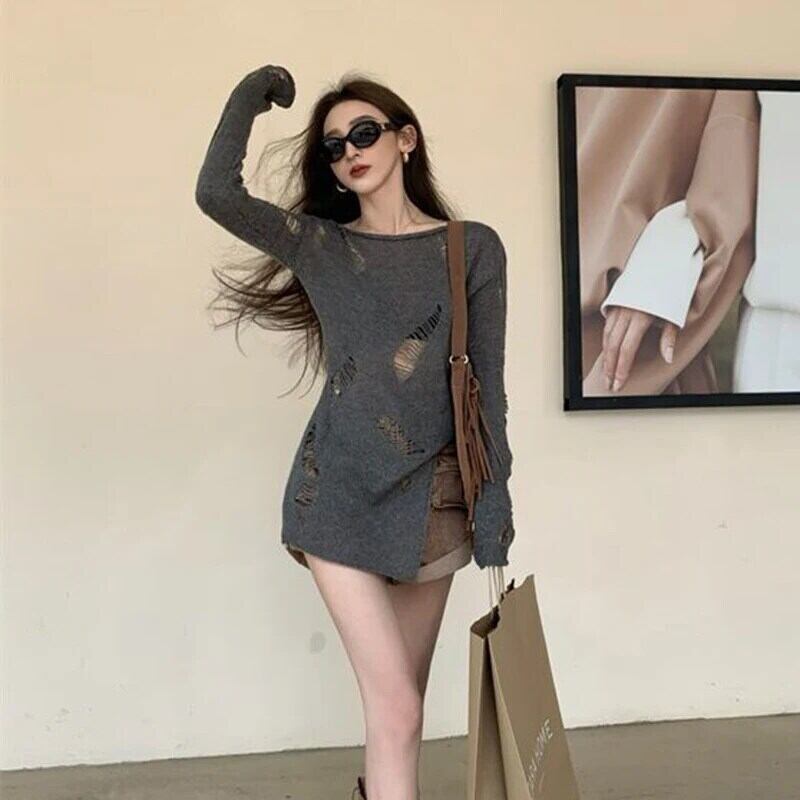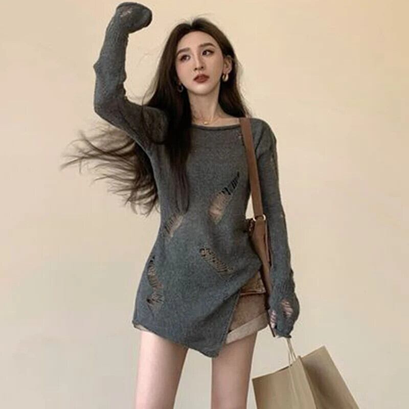 送料無料 Gidyq 女性ニットセーターセクシーな中空アウト長袖トップスストリートルーズカバーアップ ロング AE008077623167120749