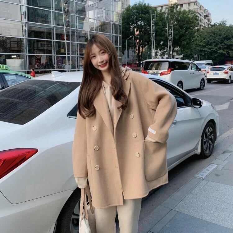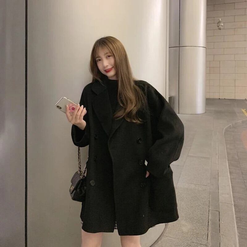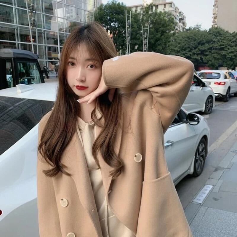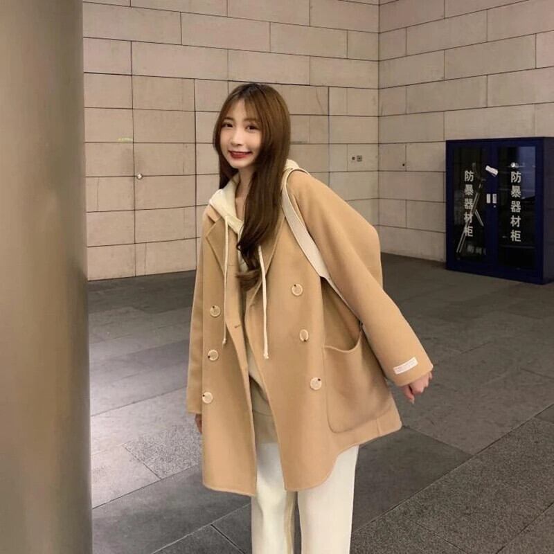 送料無料 Gidyq 冬の女性のフェイクウールコートストリートエドボタンジャケットすべて一致ルーズブレンドアウター ウィンター 冬物 ファー AE008077642537946185