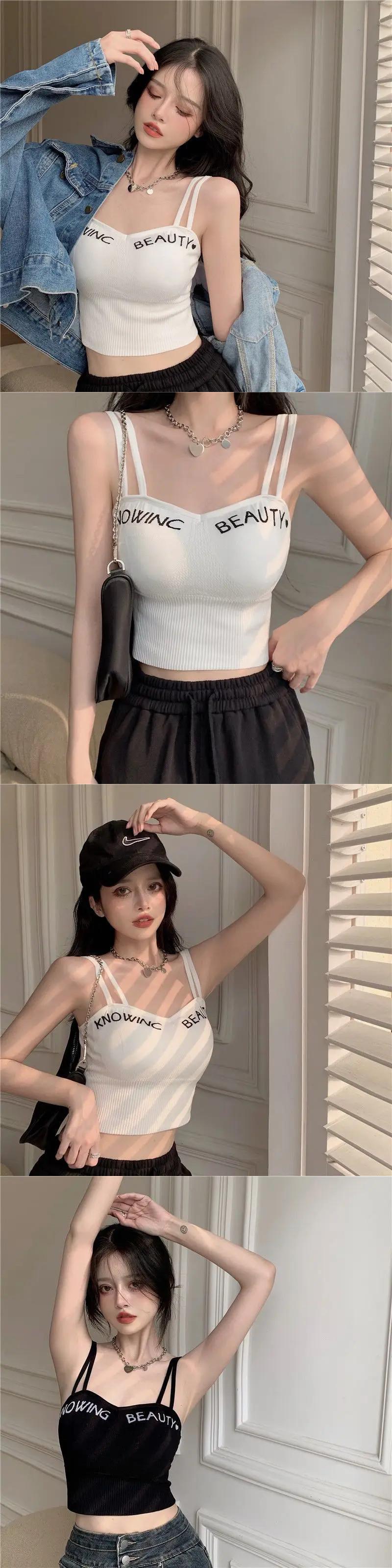 送料無料 Gidyq 女性のセクシーなクロップドキャミソールレター刺繍すべて一致タンク夏のストリートトップス サマー 夏物 AE0080776668205644