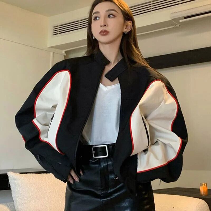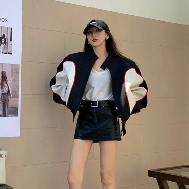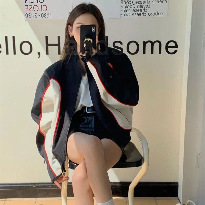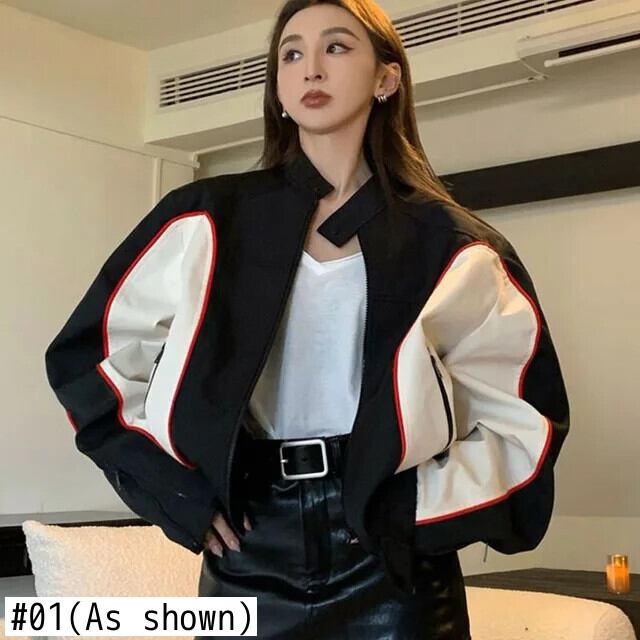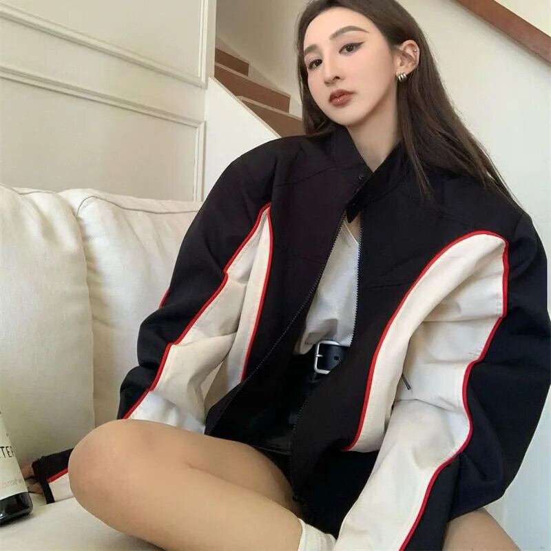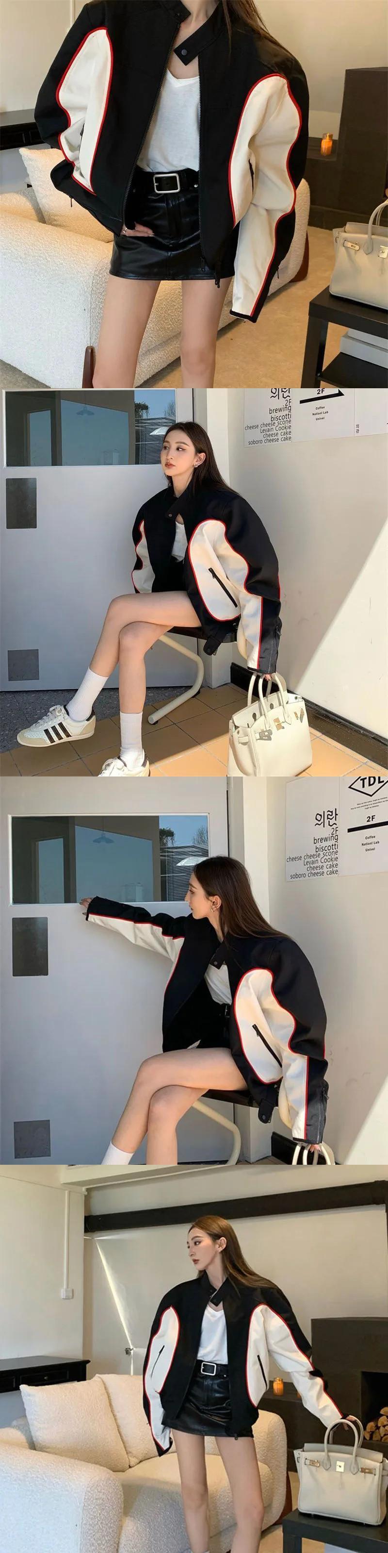 送料無料 Gidyq 秋の女性のオートバイのジャケットアメリカンレトロストリートルーズコートパッチワークジッパーすべて一致アウターウェア オータム 秋物 AE008077644029283091