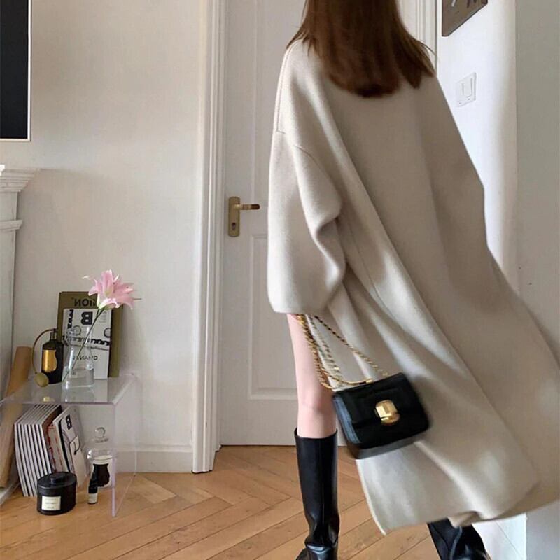 送料無料 Gidyq 女性ニットセータールーズミディジャケット冬オールマッチカーディガン生き抜く ウィンター 冬物 AE008077678071414035